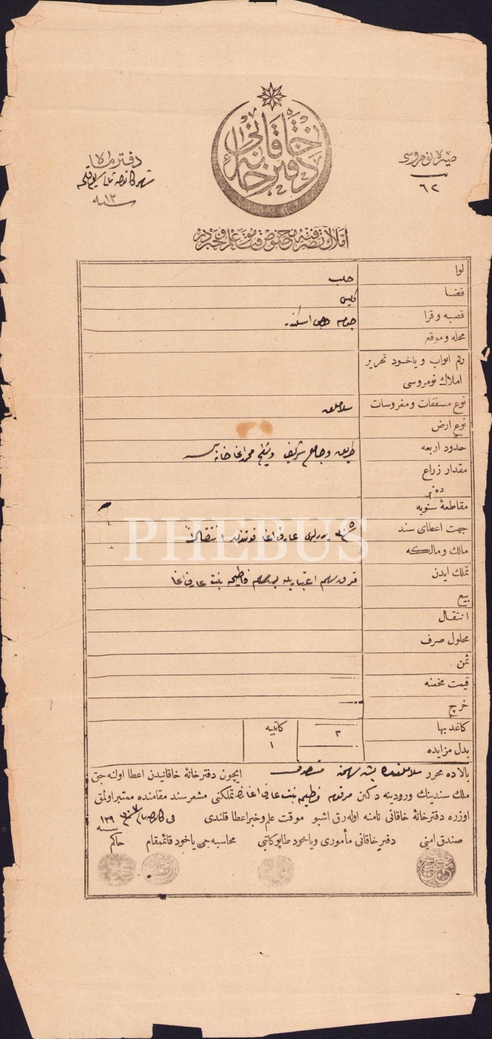 Osmanlıca tapu senedi, Halep, 1891, 18x40 cm