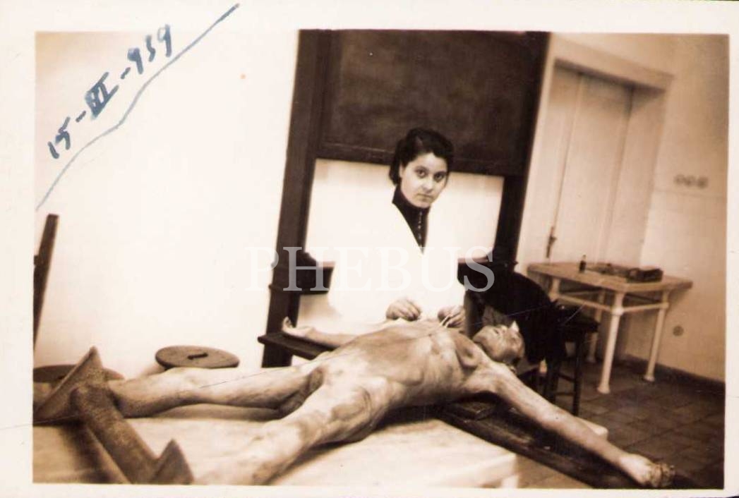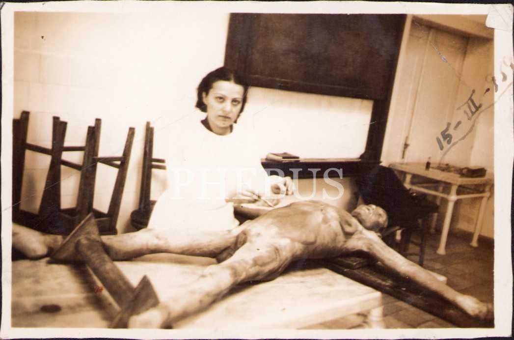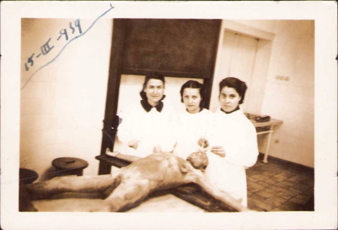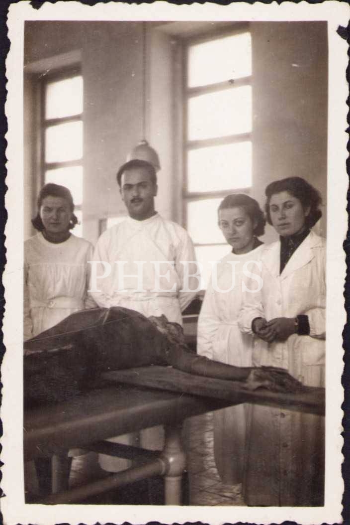 Kadavra ile hatıra fotoğrafı çektiren tıp talebeleri fotoğraf lotu, 1939, 5 adet, 6x9 cm