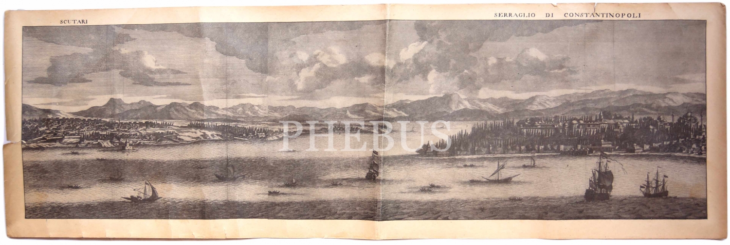 Scutari (Üsüdar) - Serraglio Di Constantinopoli gravür, 1960 tıpkı basım, 80x28 cm