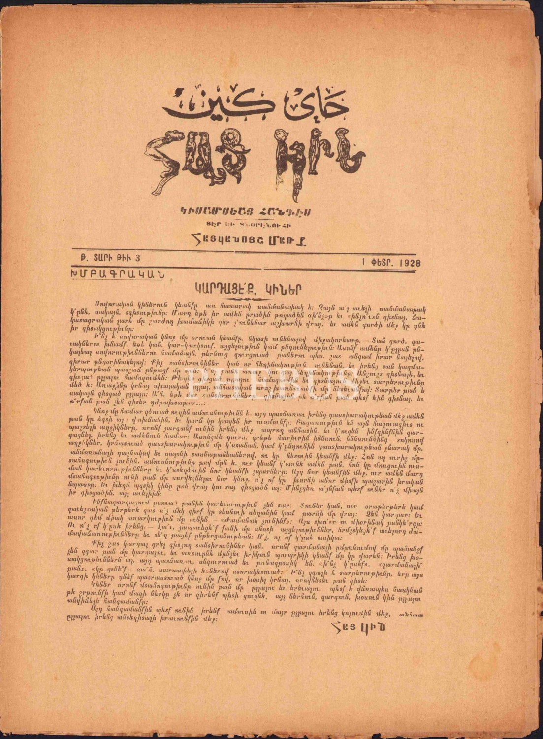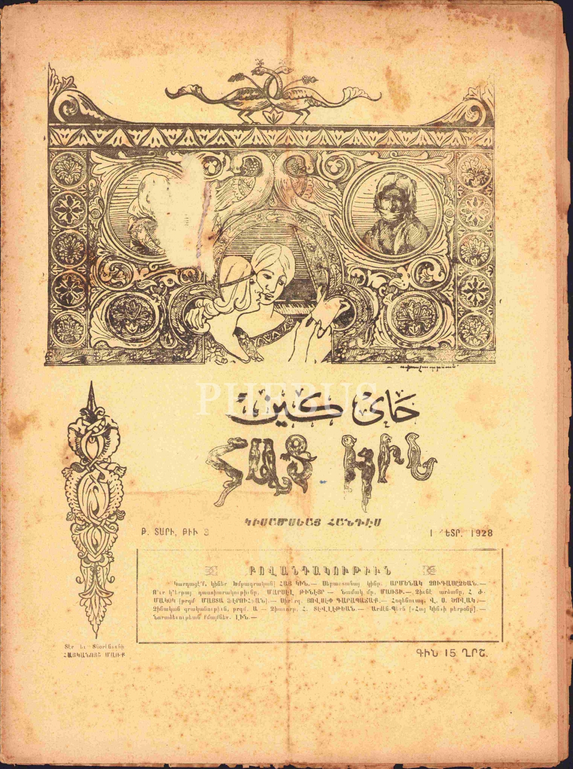 1928 tarihli Ermenice Hay Gın Kadın mecmuası, İmtiyaz sahibi Hayganus Mark, 16 sayfa, 24,5,34 cm.