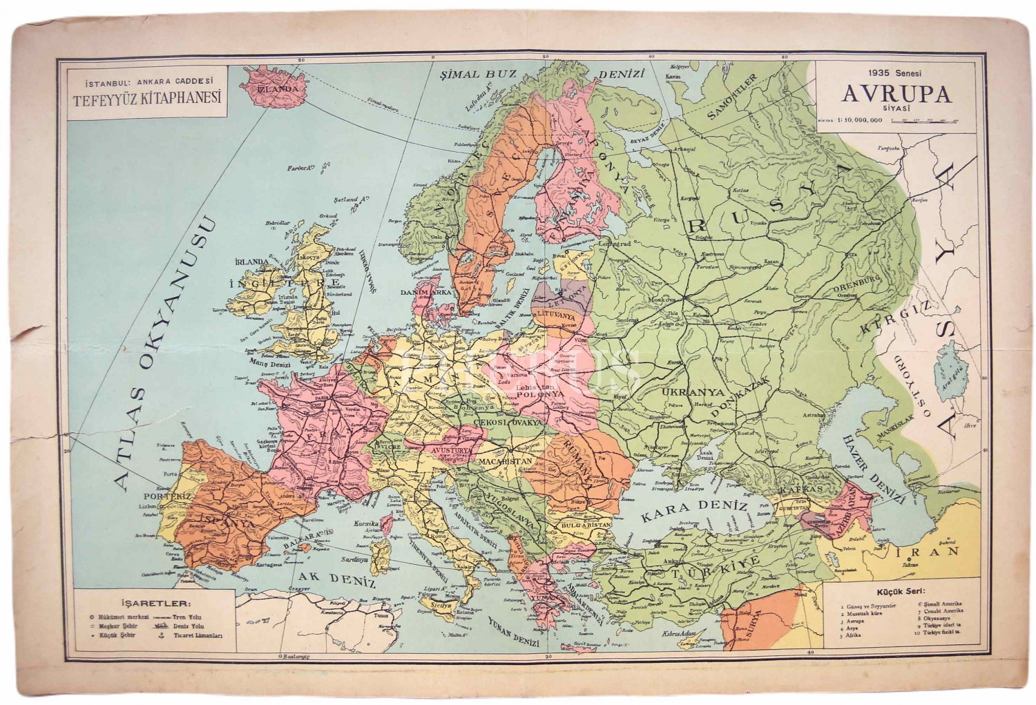 1935 Senesi Avrupa Siyasi Haritası, Tefeyyüz Kitaphanesi, 76x50 cm