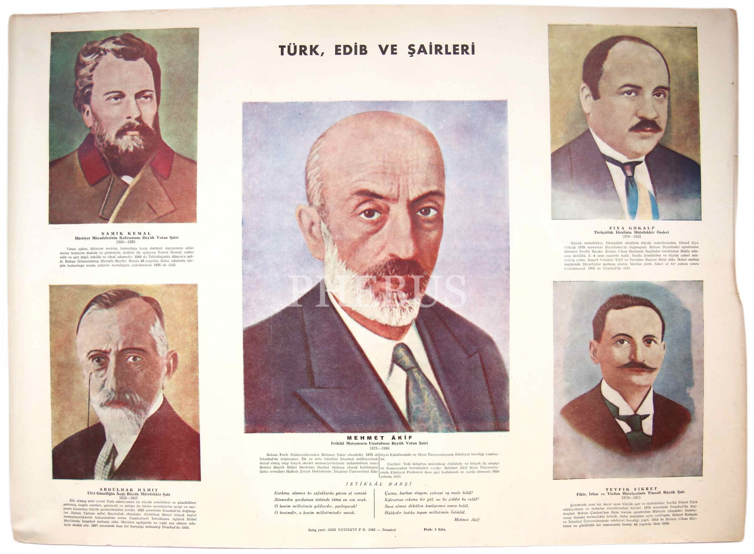 Türk Edib ve Şairleri Afiş, 66x50 cm