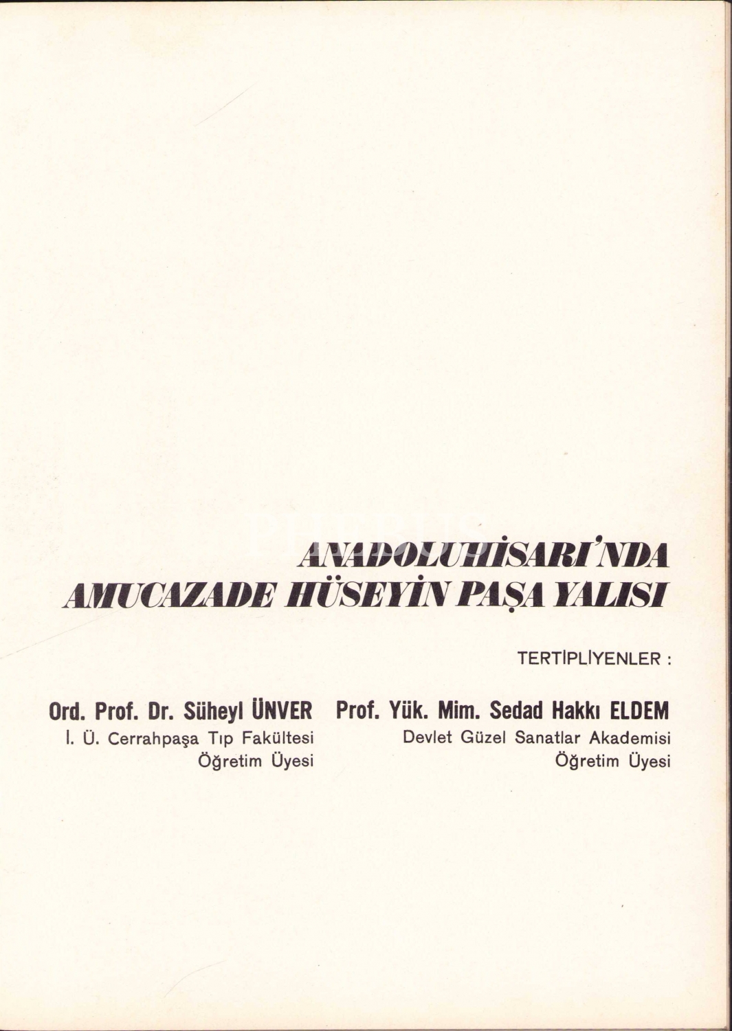 Amucazade Hüseyin Paşa Yalısı, Süheyl Ünver, Sedad Hakkı Eldem, Türkiye Turing ve Otomobil Kurumu, İstanbul 1970, 42 sayfa, 19x27 cm