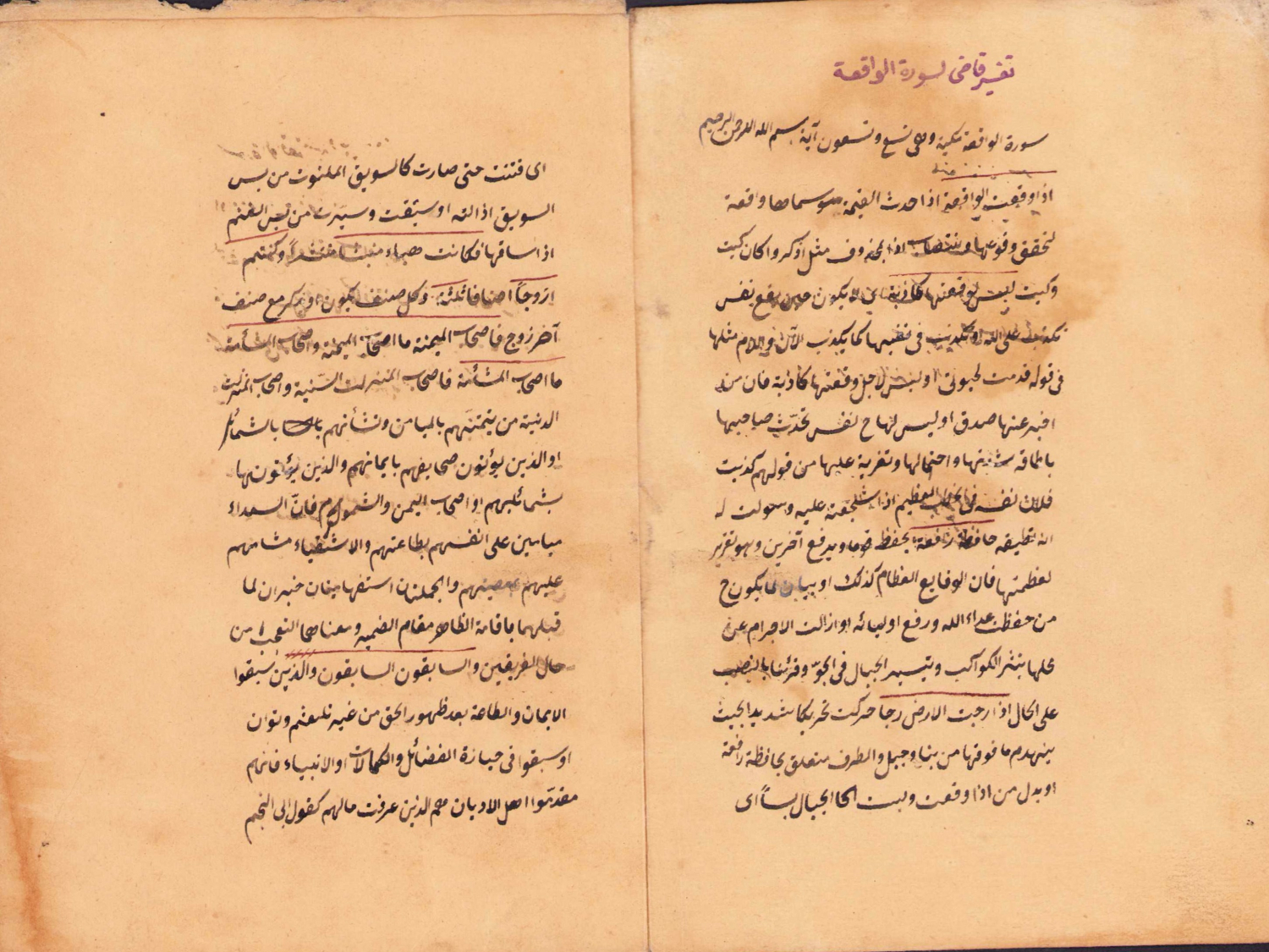 Kadı Beyzavi Tefsirinden Vakıa Suresi. Ketebe Süleyman b. Mehmet. 8 varak. Ebat: 13x18 cm.