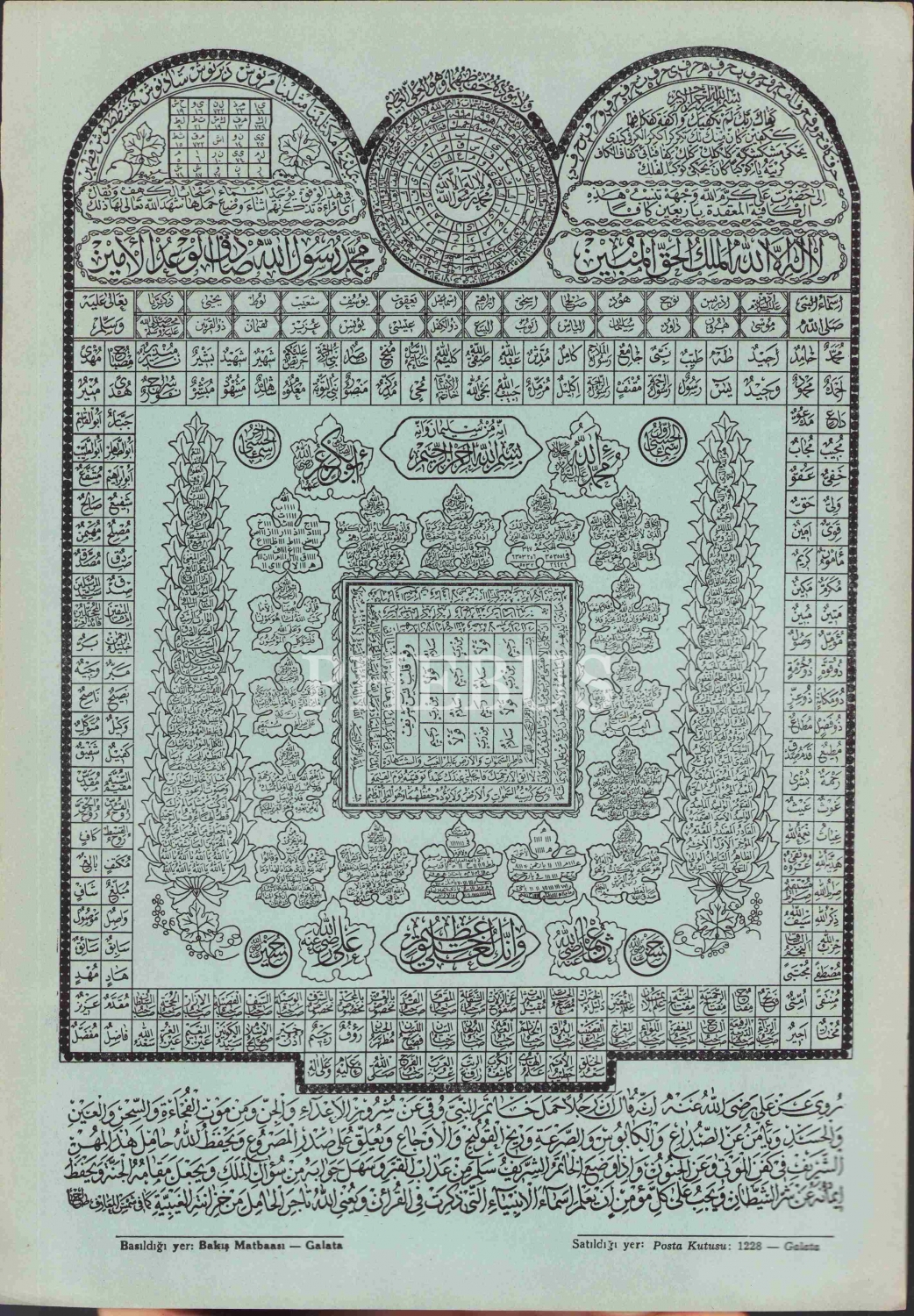Hilye formunda esmaül hüsna, Bakış Matbaası, Galata, 28x40 cm
