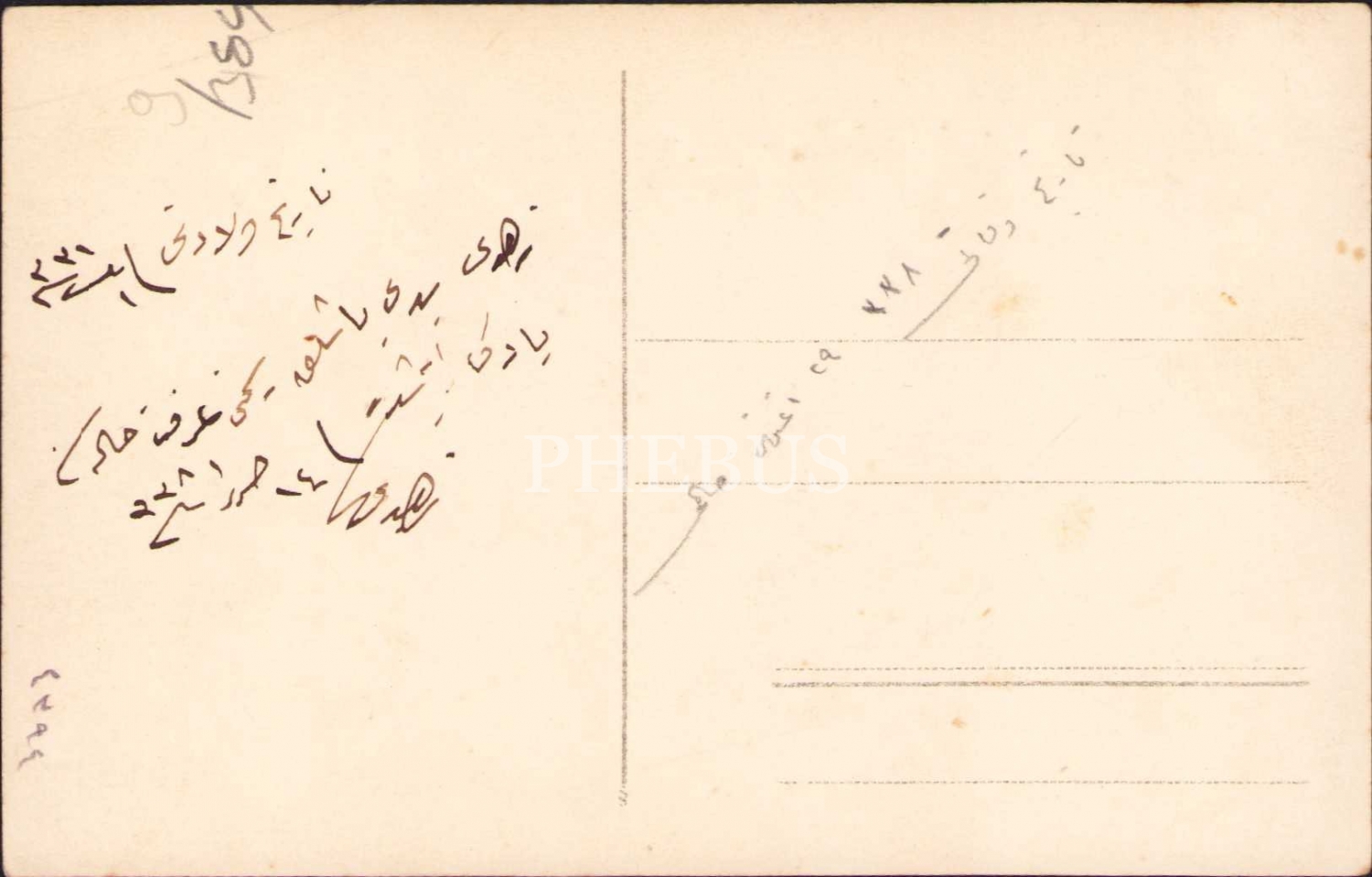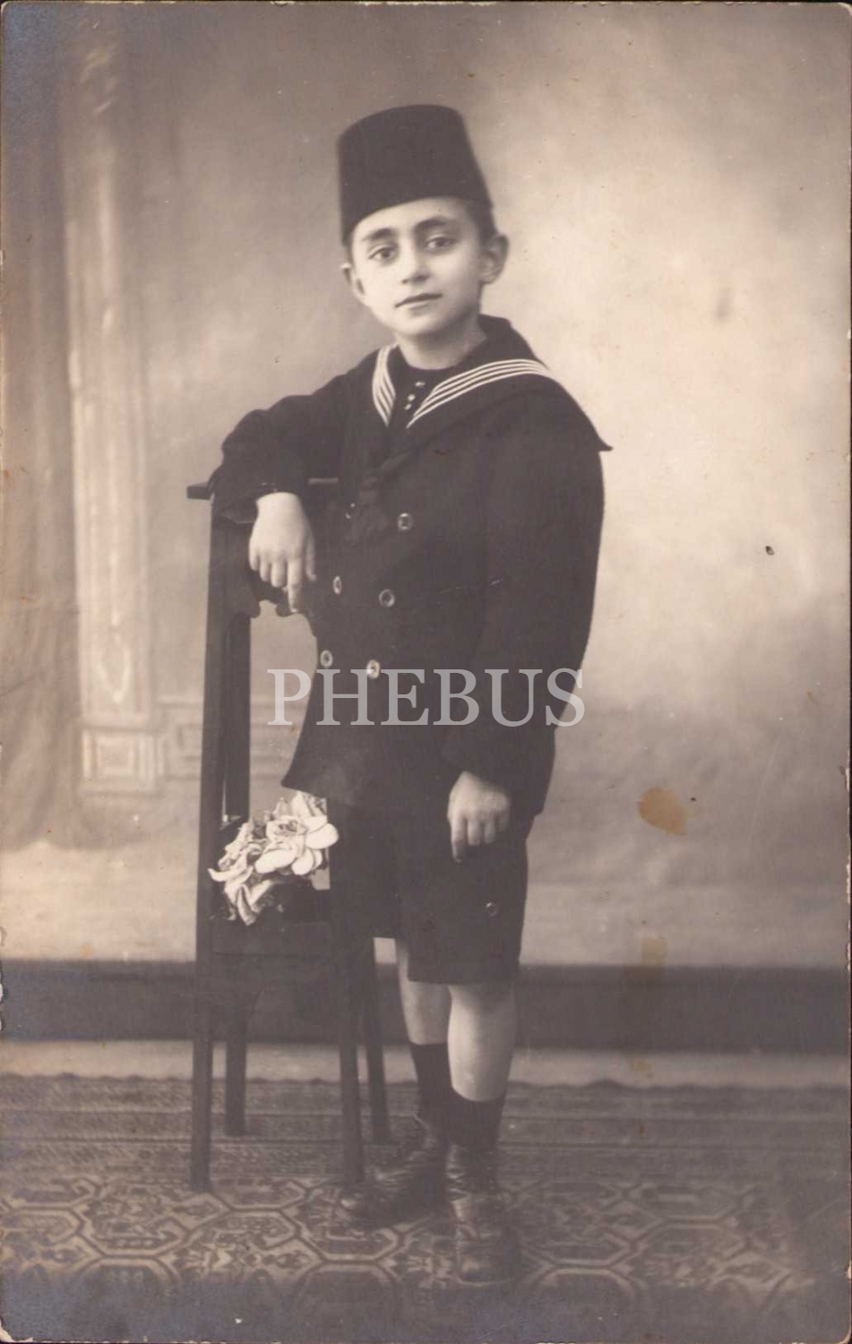 Osmanlı dönemi bahriyeli kıyafetli fesli erkek çocuk fotoğrafı, arkası Osmanlıca ithaflı, 9x14 cm
