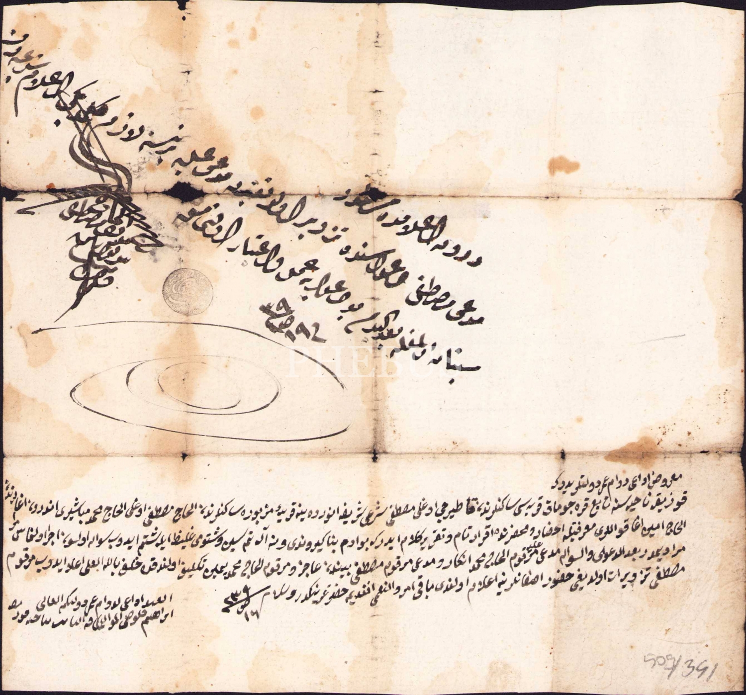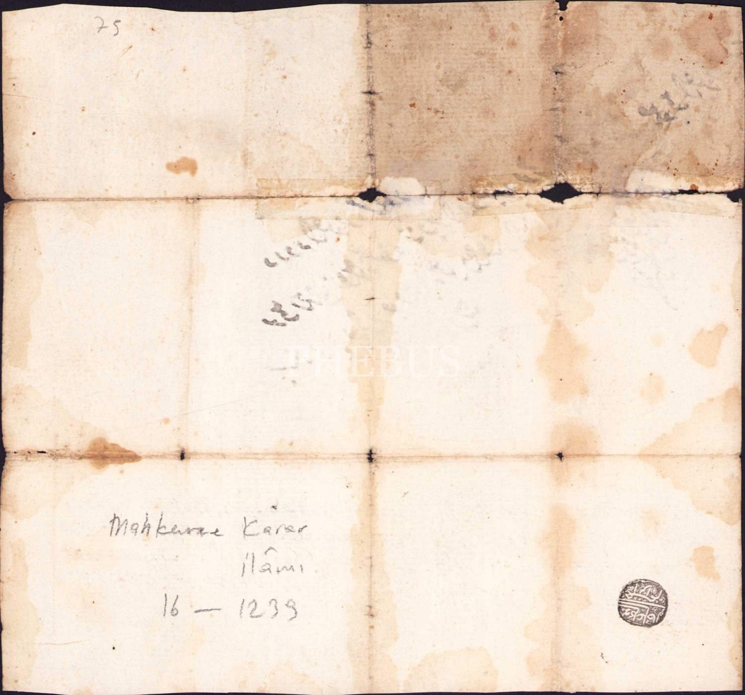 Osmanlıca 1239 tarihli mahkeme karar ilamı, haliyle, 22x20 cm