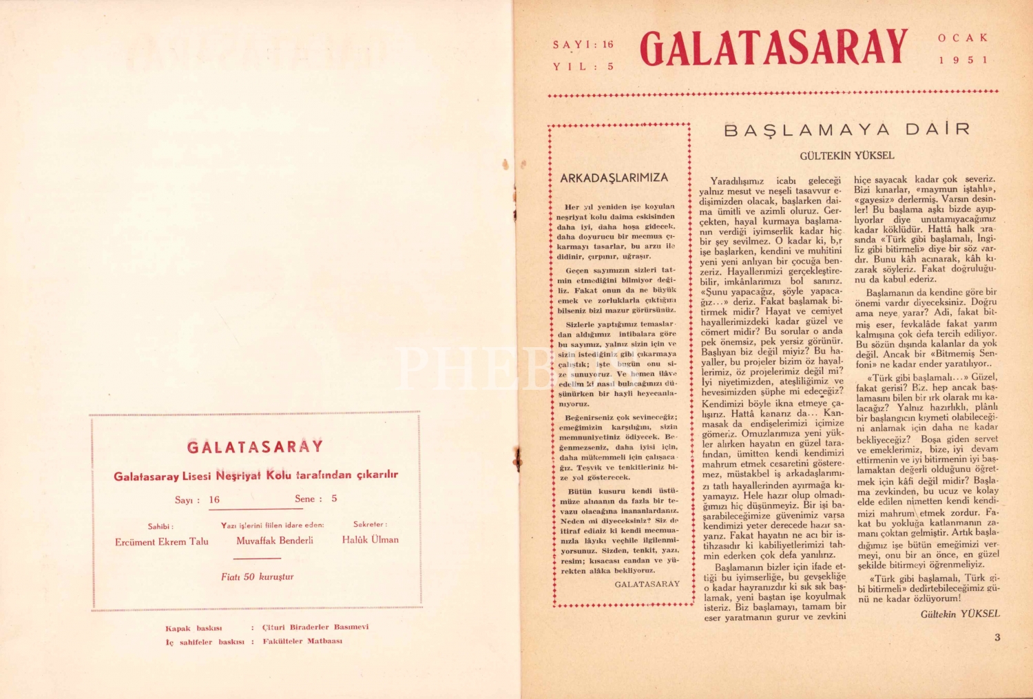 Galatasaray Dergisi, Ocak 1951, Sayı: 16, 25 sayfa, 20x27 cm