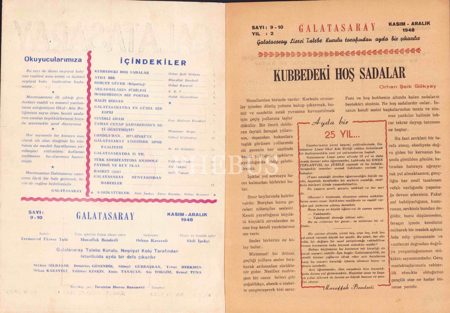 Galatasaray Dergisi, Kasım-Aralık 1948, Sayı: 9-10, 24 sayfa, 20x27 cm