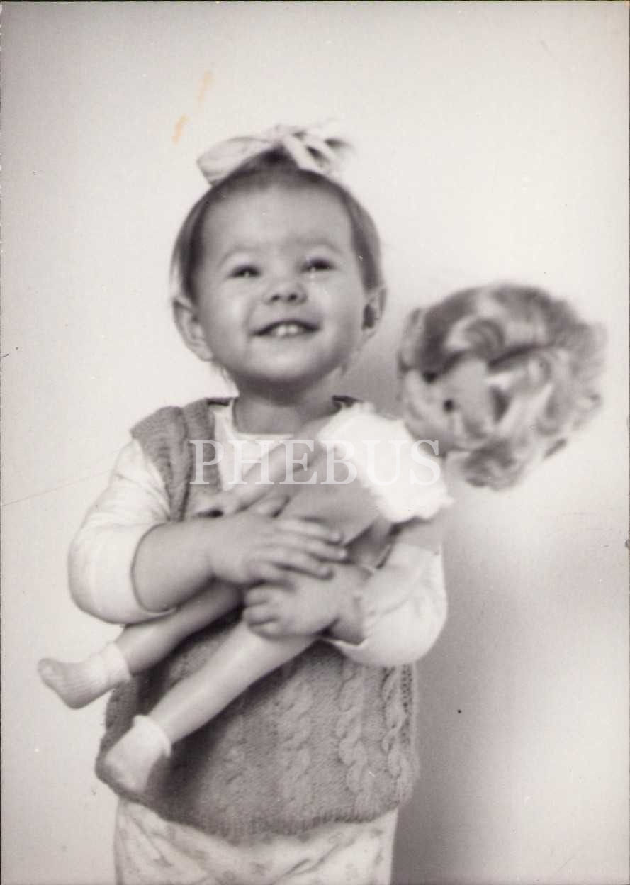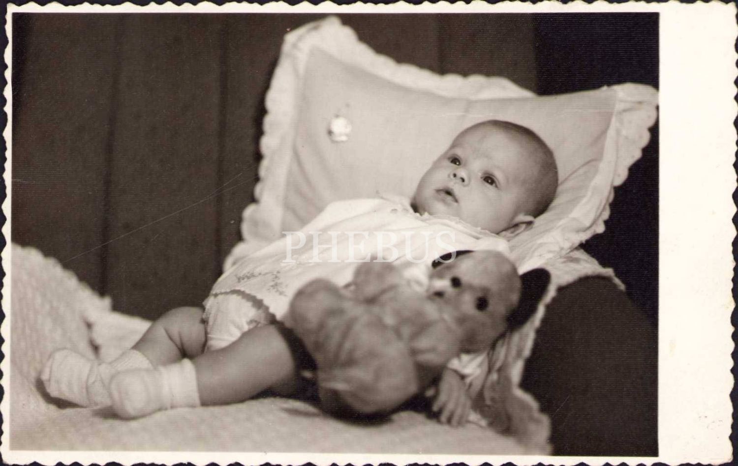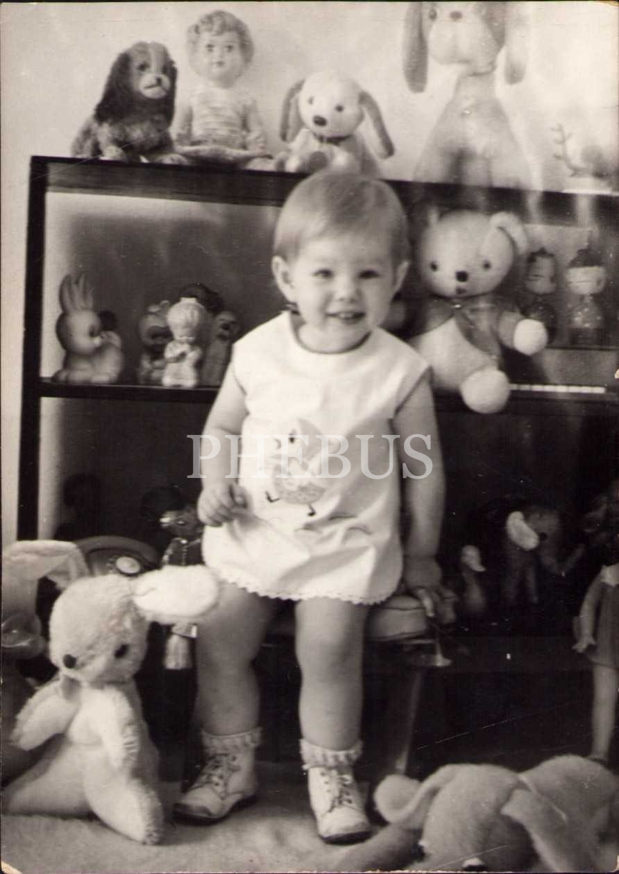 Oyuncaklı çocuk fotoğrafları lotu, 3 adet, muhtelif ebatlarda.