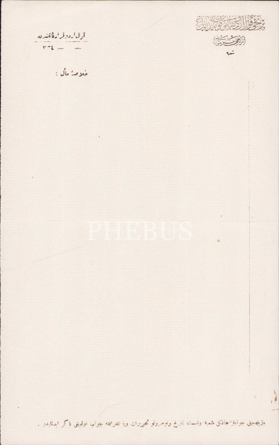 Osmanlıca Birinci Kolorduyu Hümayun Kumandanlığı antetli boş dokuman, 15x24 cm