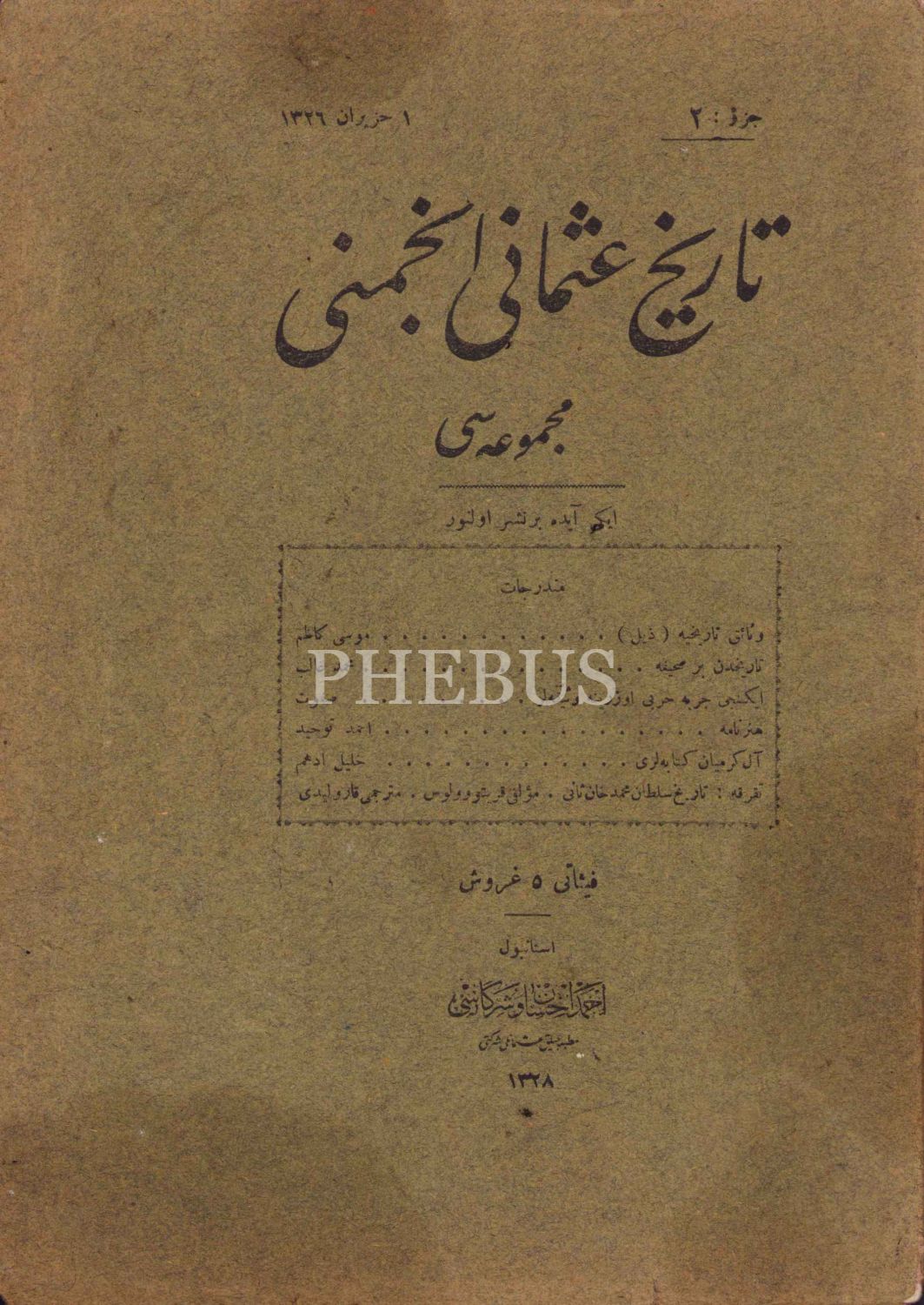 Osmanlıca Tarih-i Osmani Encümeni Mecmuası - 2. cüz, Ahmed İhsan ve Şürekası, İstanbul, 1 Haziran 1326, 60 sayfa, 17x24 cm