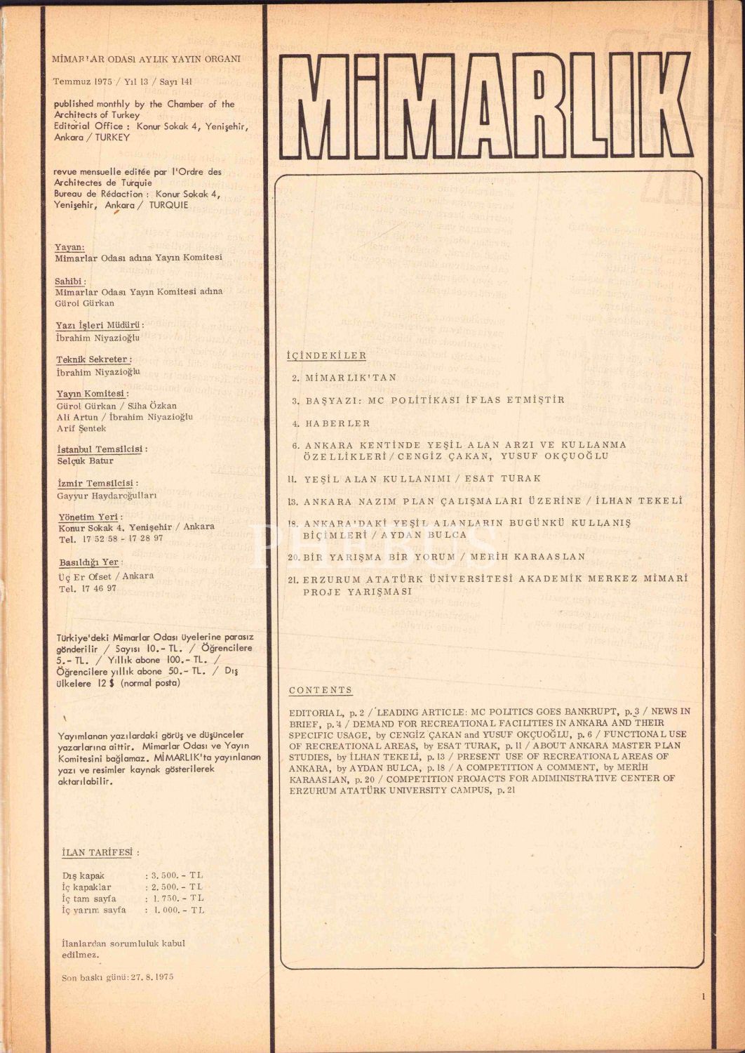 Mimarlık dergi lotu, 5 adet, 23x32 cm
