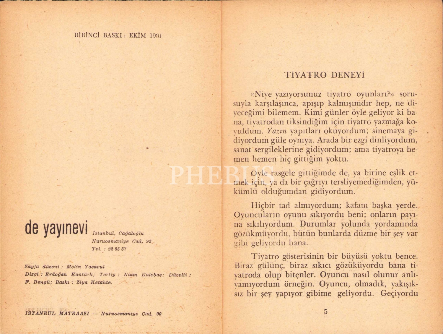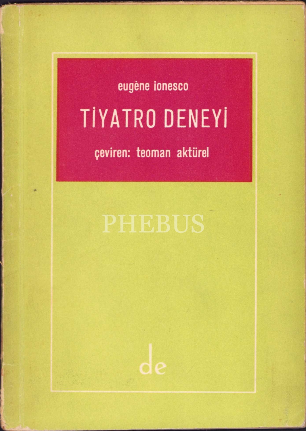 Tiyatro Deneyi, Eugene Ionesco, Çev. Teoman Aktürel, İlk baskı, İstanbul Matbaası, 1961, 39 sayfa, 11x15 cm