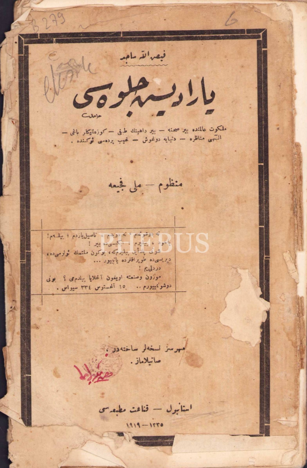 Osmanlıca Yaradış Cilvesi, Feyzullah Sacid [Ülkü], İstanbul 1335 Kanaat Matbaası, 144+1 sayfa, haliyle, 21x13 cm, ÖZEGE; 22869