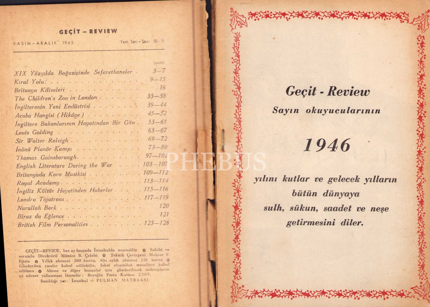Geçit Review dergisi, Kasım-Aralık 1945, Sayı: 10-11, 128 sayfa, 14x20, sırtı haliyle
