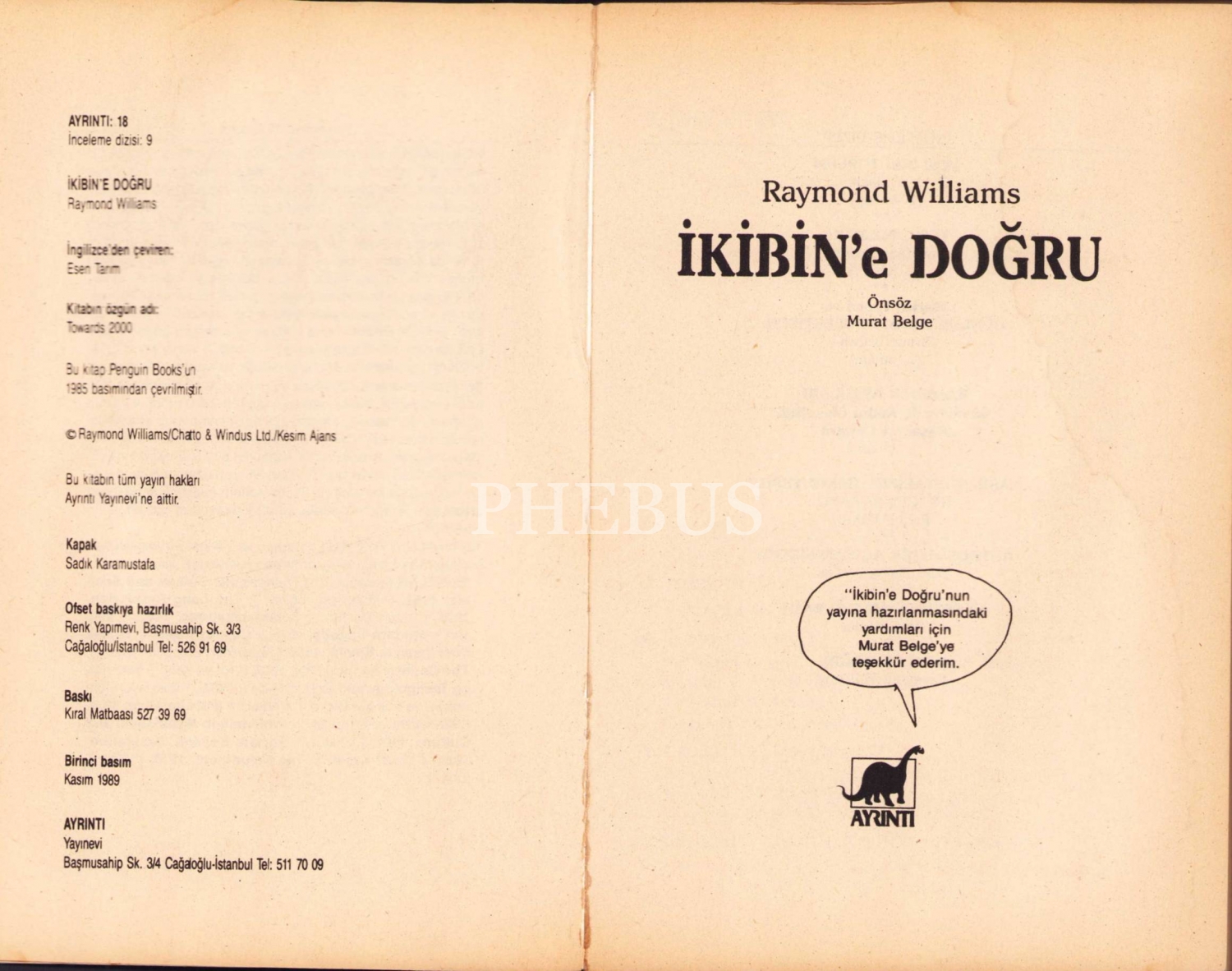 İkibin'e Doğru, Raymond Williams, çev: Esen Tarım, Ayrıntı Yayınları, Birinci Basım: 1989, 256 sayfa, 13x19 cm