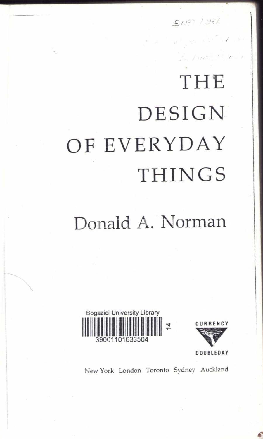 The Design Of Everyday Things, Donald Norman, Published by Doubleday, 1990, 257 sayfa, 14x25 cm