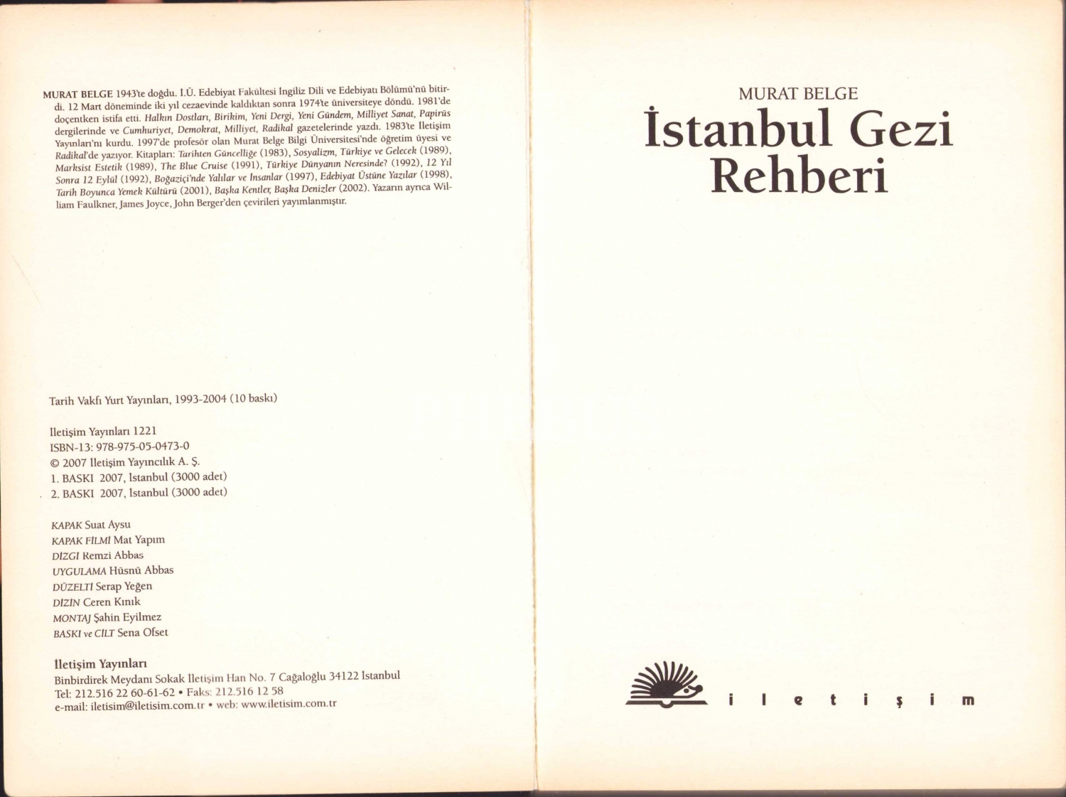 İstanbul Gezi Rehberi, Murat Belge, İletişim Yayınları, 2. Baskı: 2007 - İstanbul, 423 sayfa, 14x22 cm