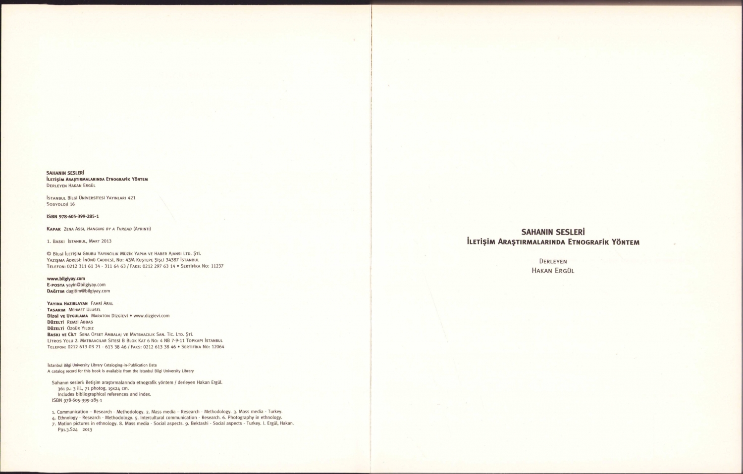 Sahanın Sesleri - İletişim Araştırmalarında Etnografik Yöntem, Derleyen: Hakan Ergül, İstanbul Bilgi Üniversitesi Yayınları, 1. Baskı: 2013, 343 sayfa, 19x24 cm