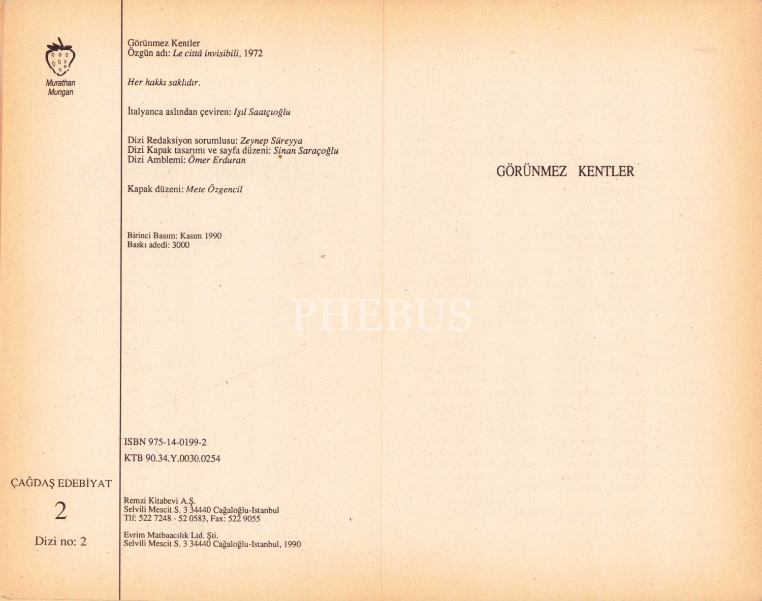Görünmez Kentler, Italo Calvino, Remzi Kitabevi, 1990, 200 sayfa, 13x20 cm