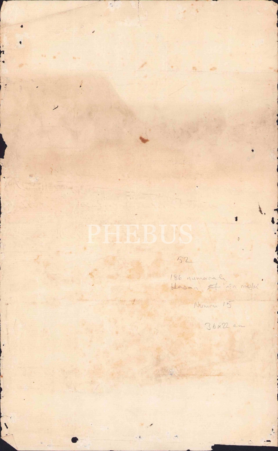 186 numaralı Hasan Efendi'nin rik'a yazı meşki, numru 15, 36x22 cm