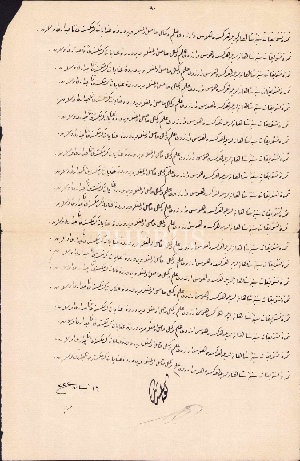 16 Nisan 1322 tarihiyle görülmüş rik'a meşki, 36x22 cm