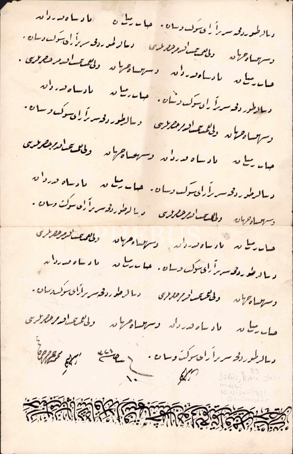 Sülüs, rik'a yazı meşki, 10 Nisan 1321, 36x22 cm
