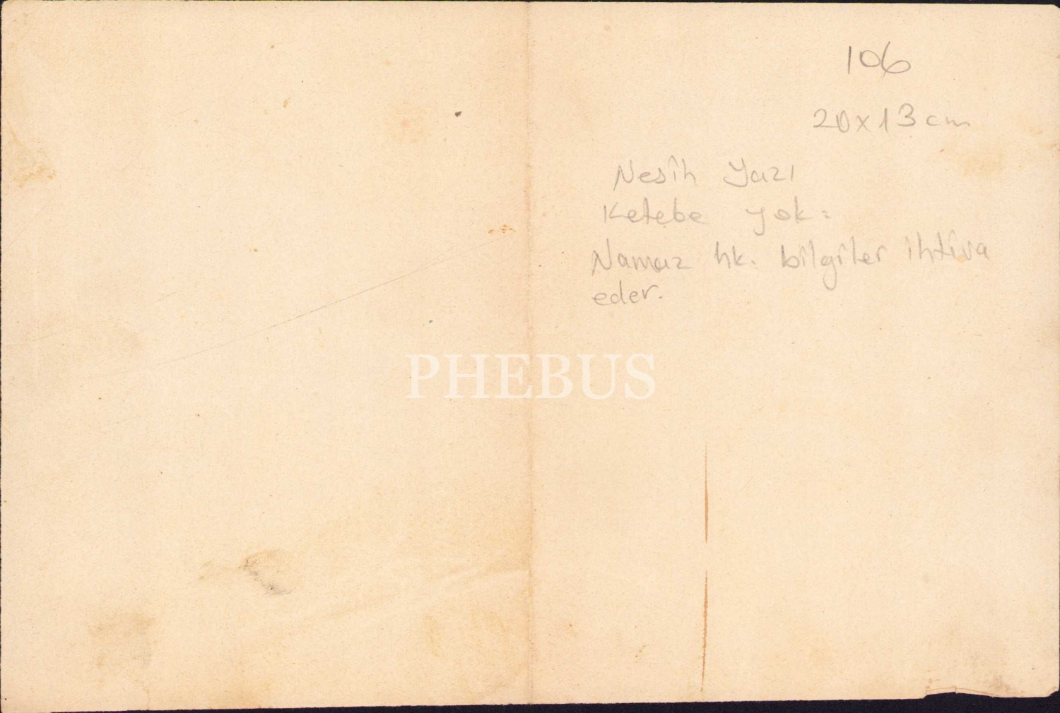 Nesih yazı, namaz hakkında bilgiler ihtiva eder, 20x13 cm