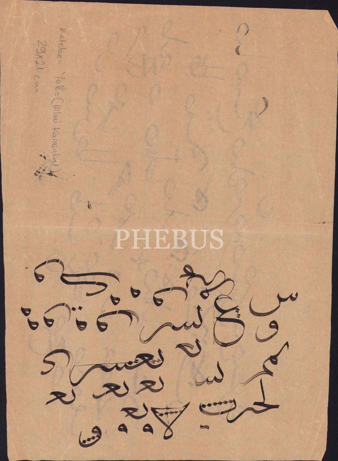 Önlü arkalı sülüs - meşk, 29x21 cm