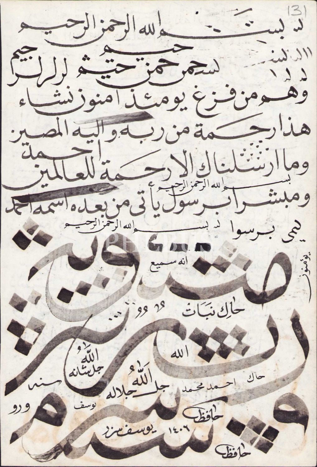 Önlü arkalı sülüs nesih meşk, Ketebe Hafız Yusuf [Sezer], 22x15 cm