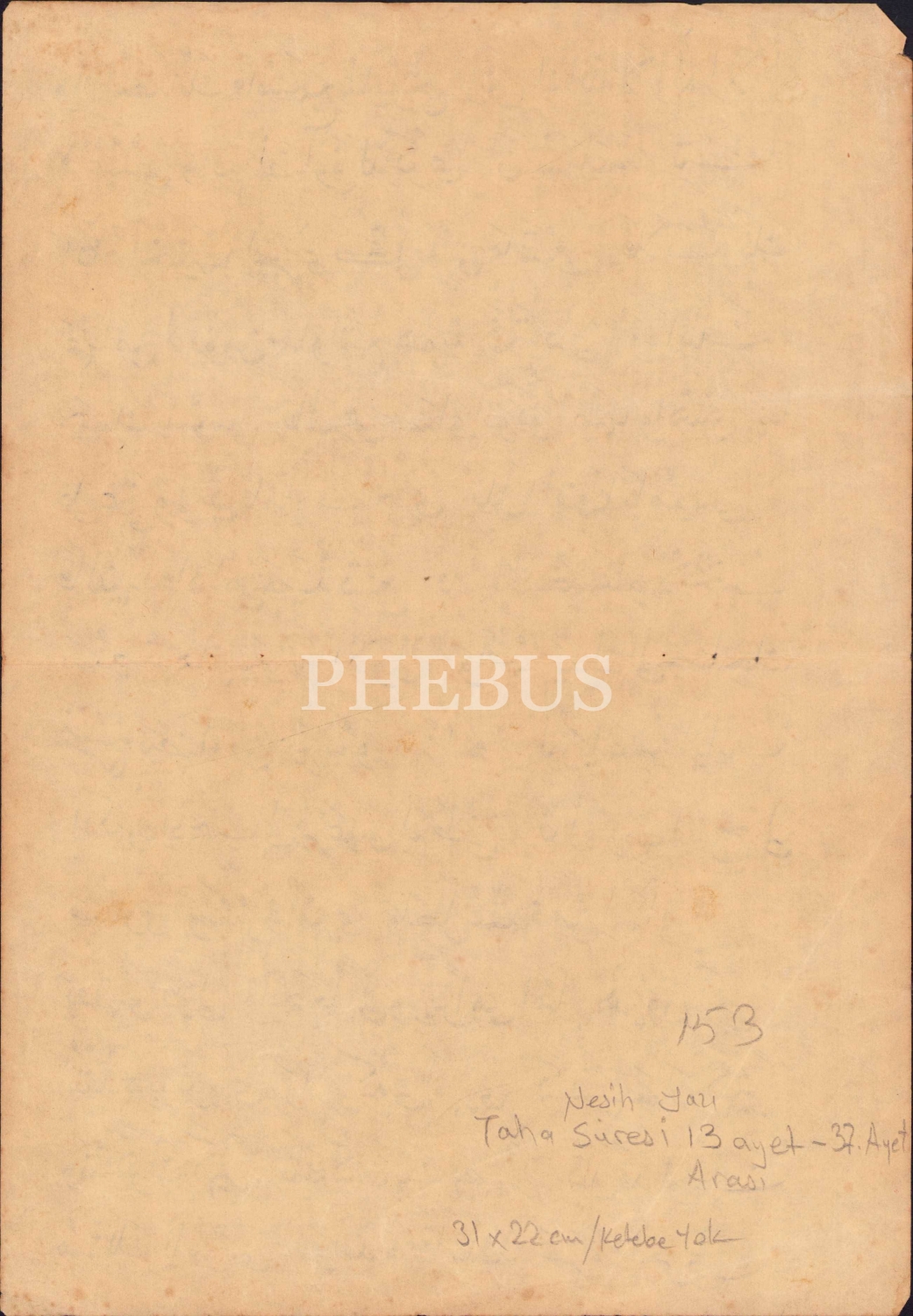 Nesih yazı, Taha Suresi 13-37. ayetler, 31x22 cm