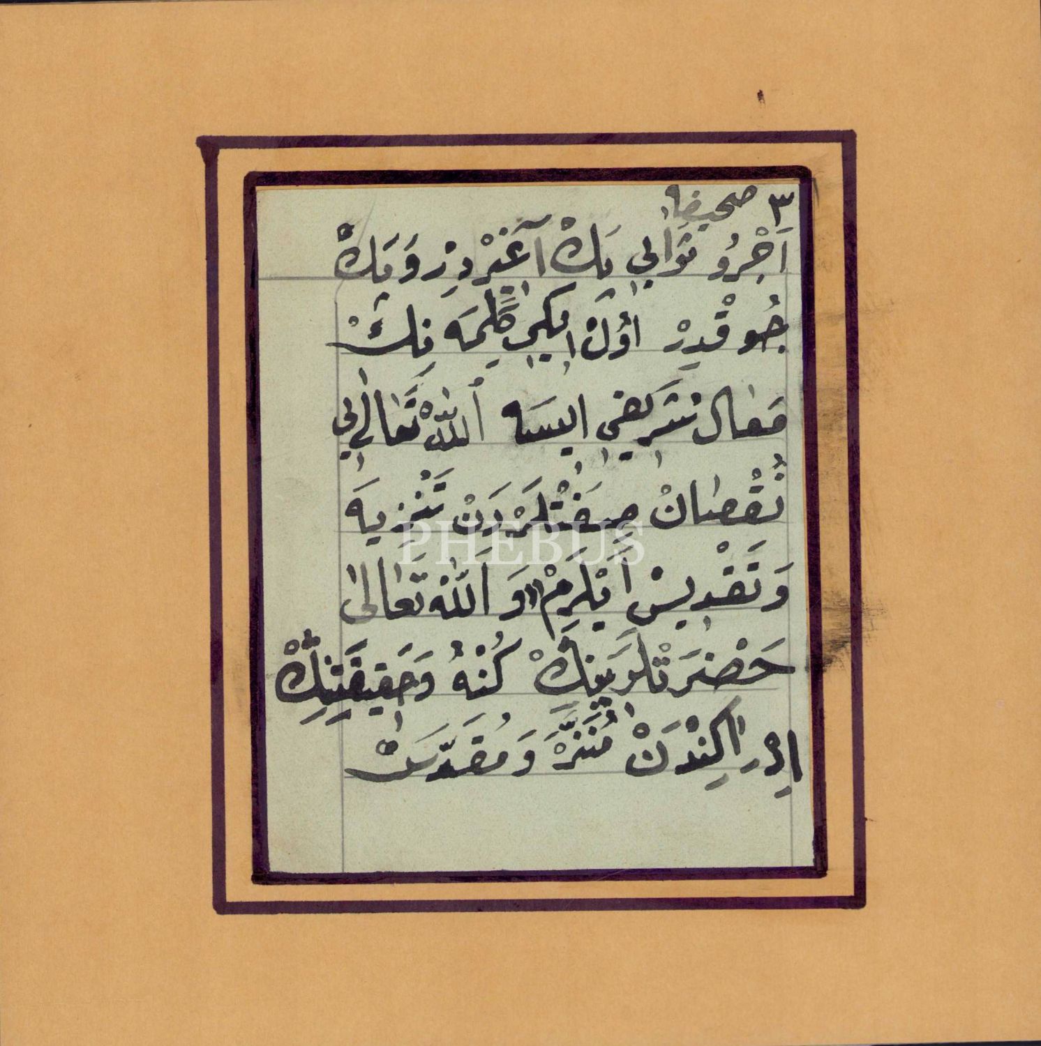 Nesih meşk çalışması, Hattat Mehmet Şevket Pektaş'ın meşki'nin 3. sahifesi, 1. sahifedeki Hadis-i Şerife'nin açıklamasının devamıdır, 20x20 cm