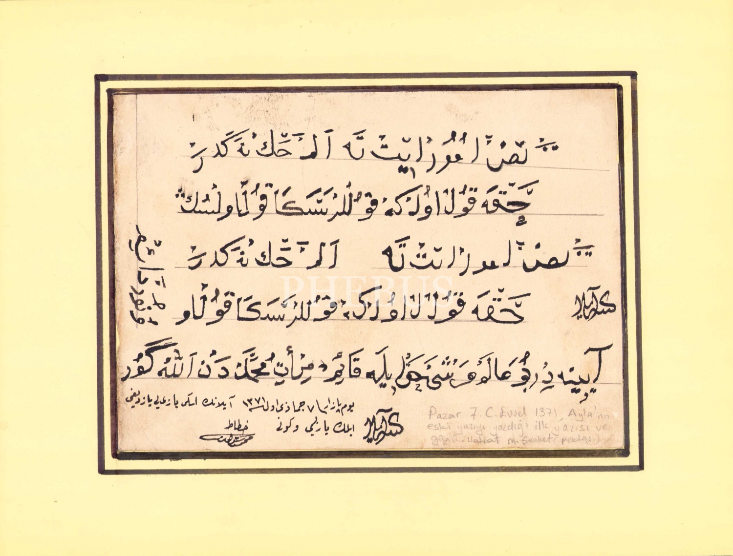 Nesih yazı, Hattat Mehmet Şevki Pektaş'ın talebesi Ayla Kartal'ın ilk yazısı, ketebe Ayla, 31x23 cm