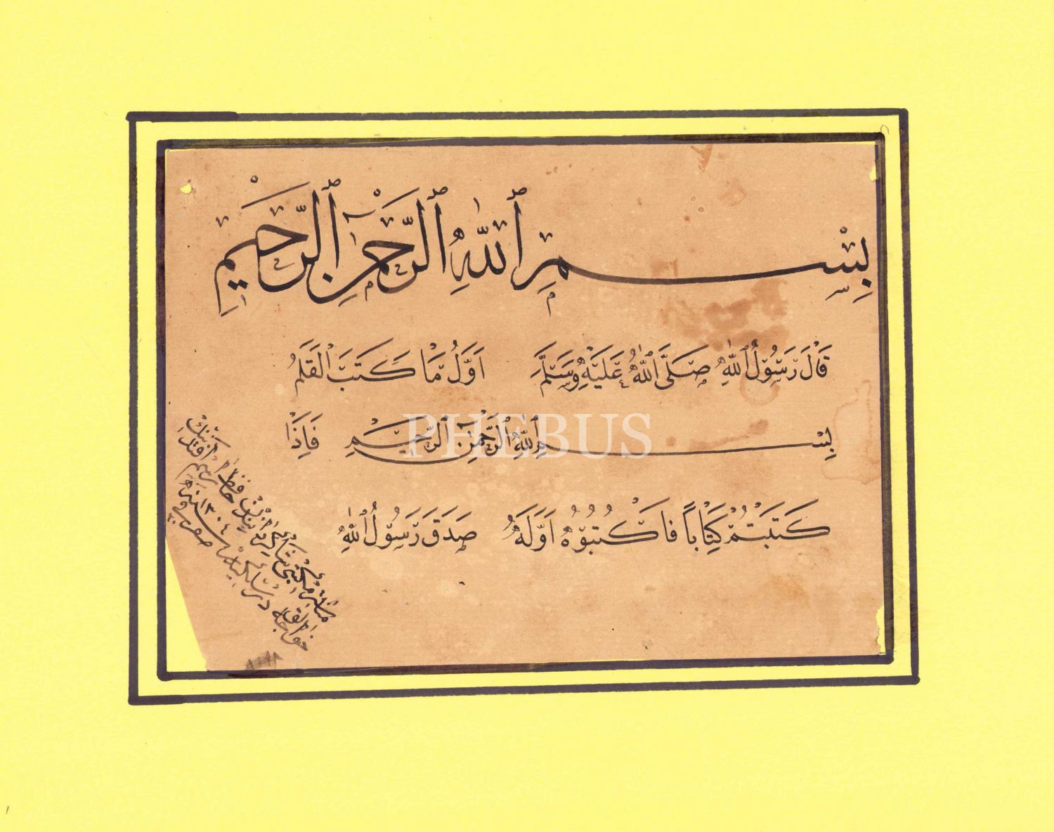 Sülüs ve nesih yazı, ketebe Manastır Mektebi Şakirdanından Hafız Rasim Efendinin Hocalık dersliğidir. 20 Safer 1304, 29x24 cm