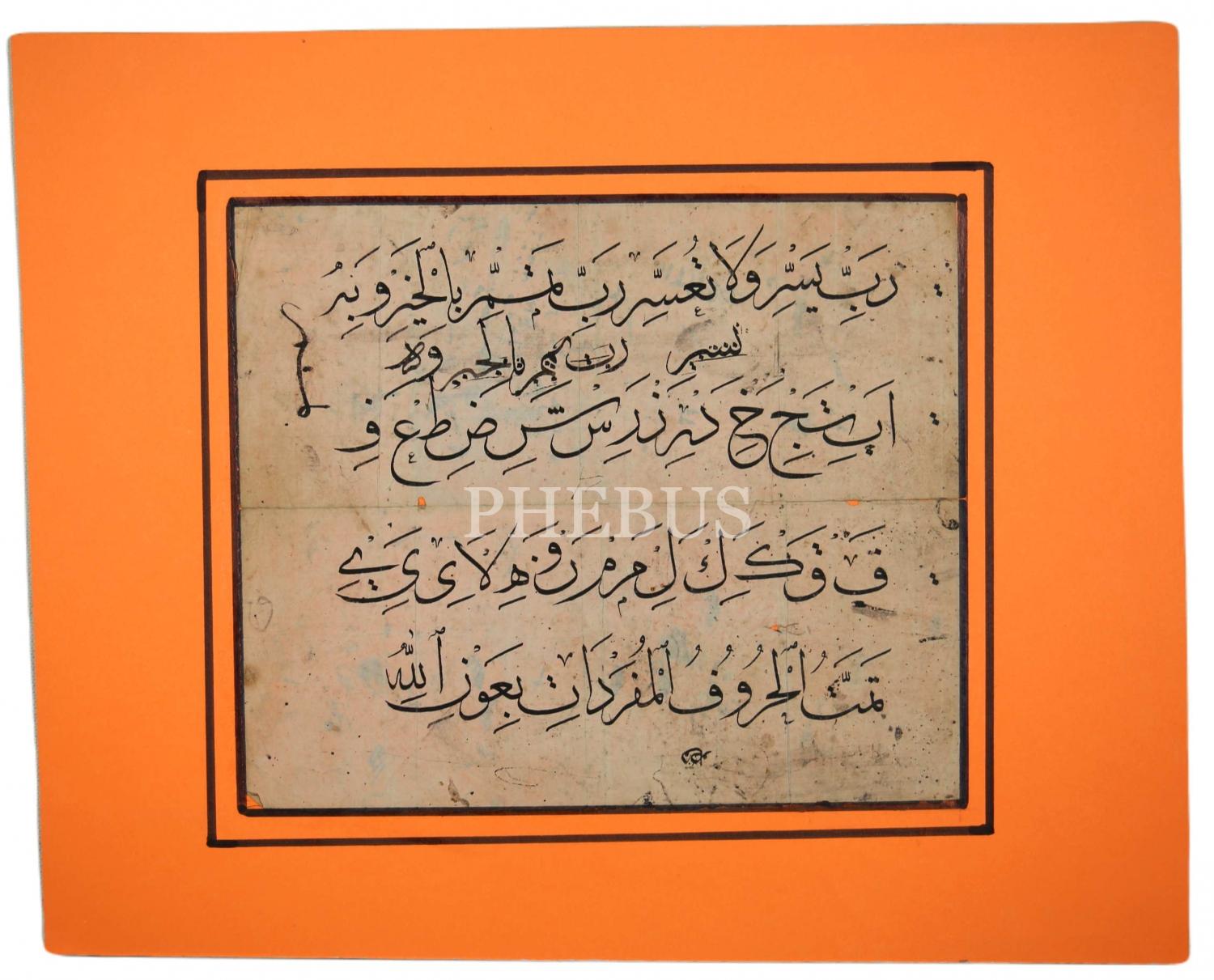 Sülüs yazı meşki, Rabbiyessir duası, Elif harfinden, Ye harfine kadar, Osmanlı dönemi yazı, hocasının düzeltme yazısı vardır, 34x27 cm
