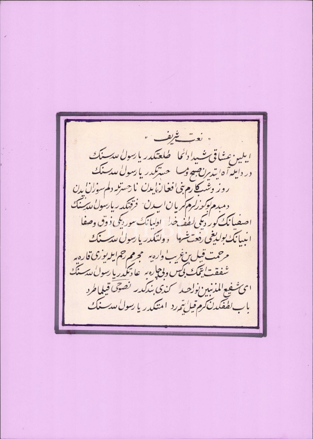 Talik yazı, Nat'ı Şerif, 10 satır, 35x25 cm