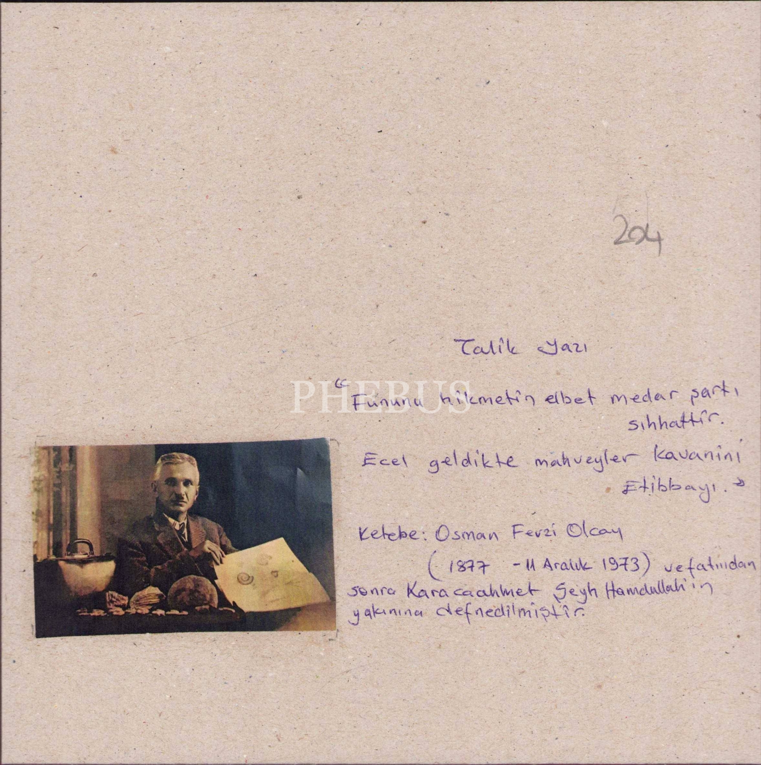 Talik yazı, ketebe Osman Fevzi Olcay, 20x20 cm