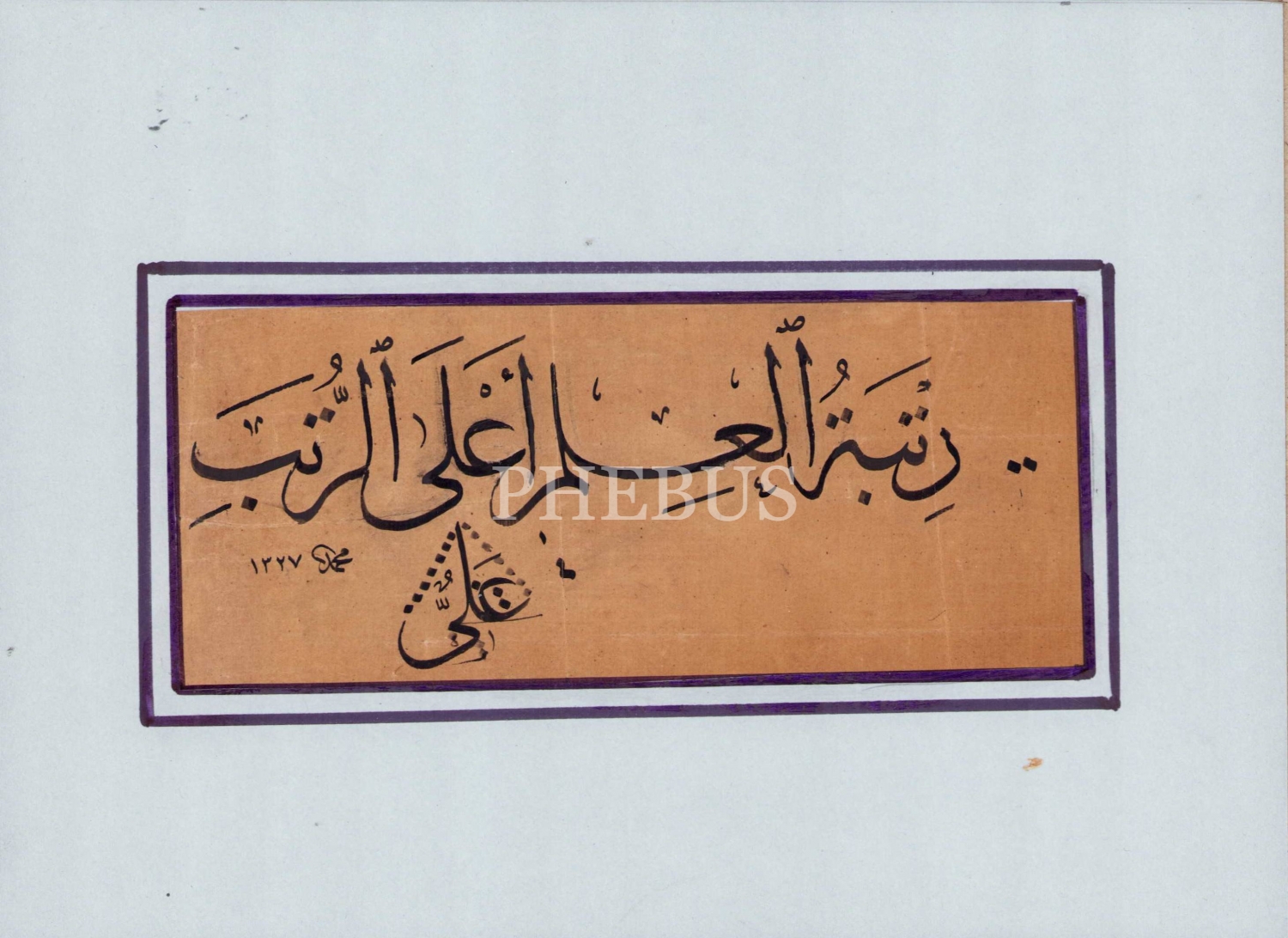 Celi sülüs, Hadis-i şerif, ketebe Mehmet Efendi 1327, 25x17 cm
