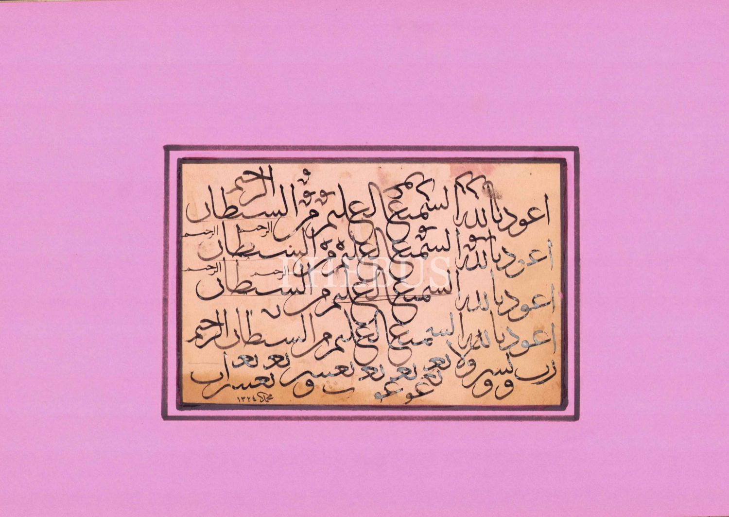 Sülüs meşk yazı, ketebe Mehmet Efendi 1324, 35x25 cm