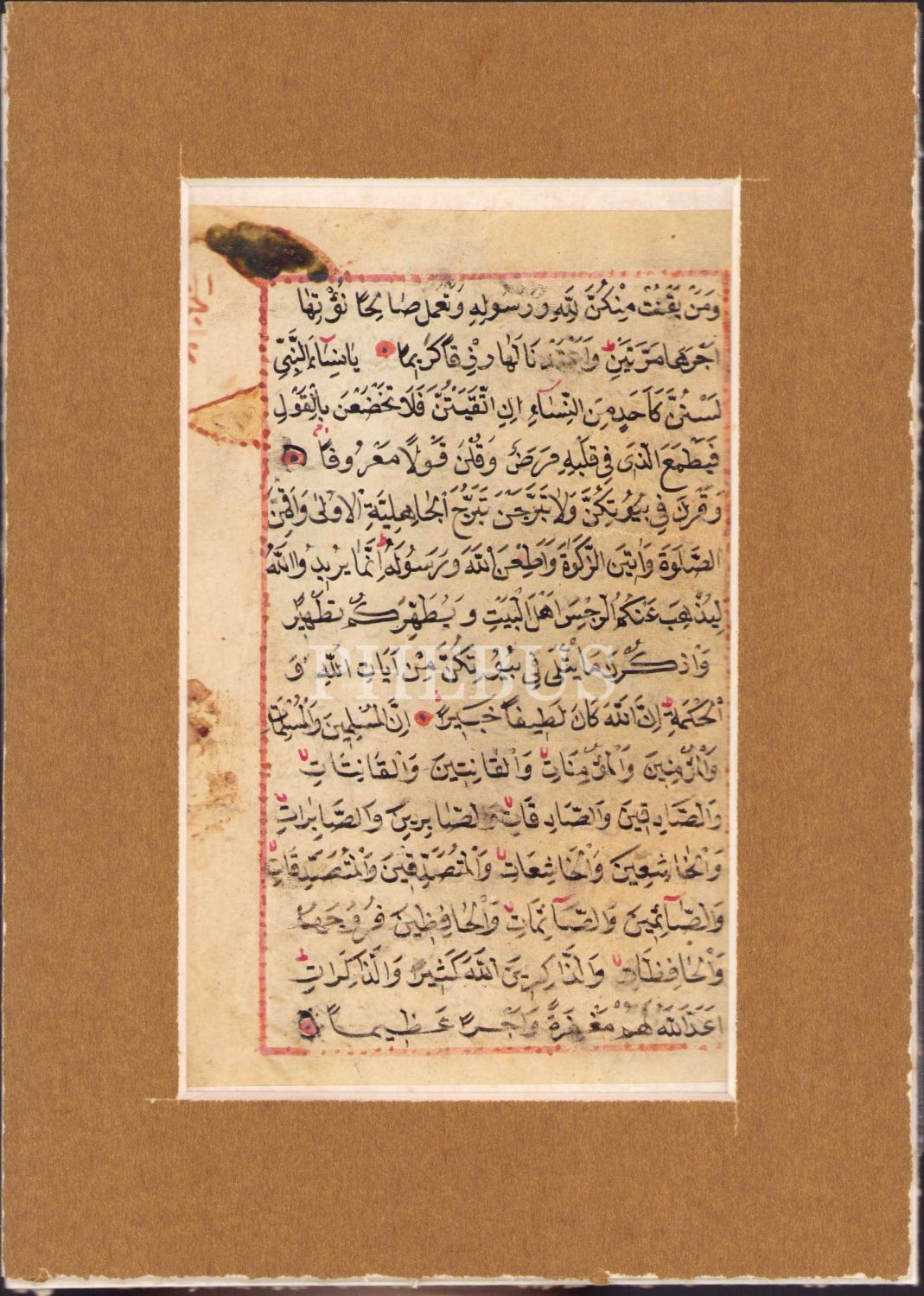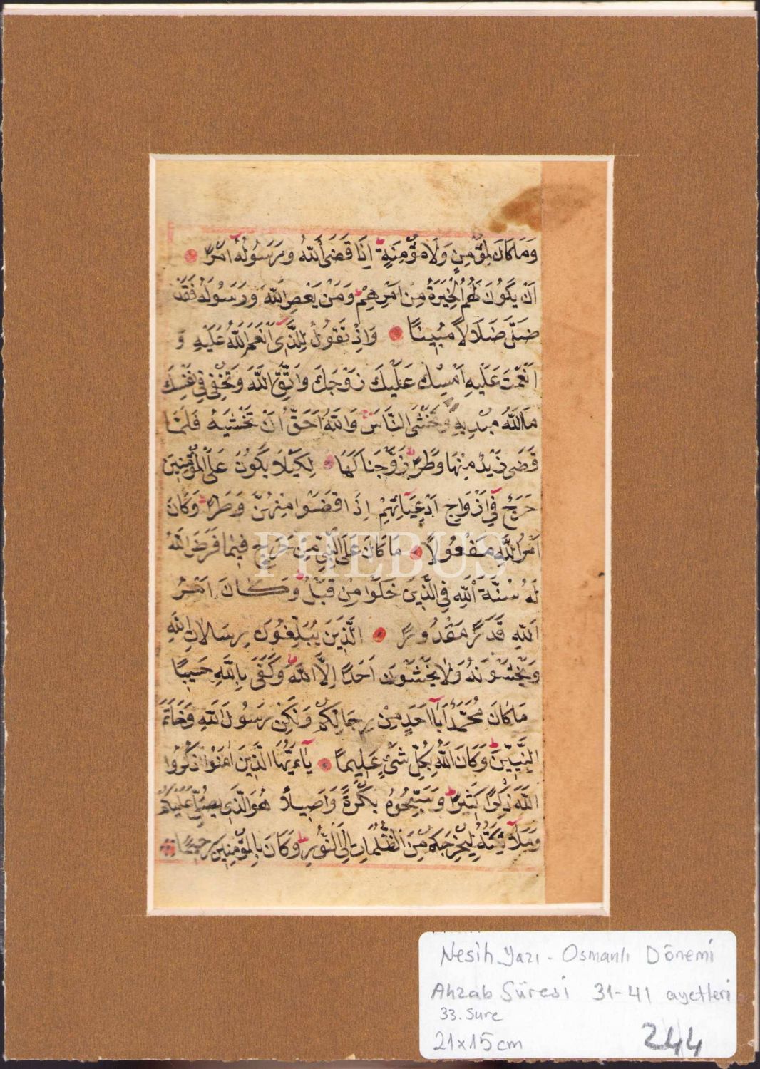 Osmanlı dönemi nesih yazı, Ahzab suresi 31 - 41. ayetler, 21x15 cm