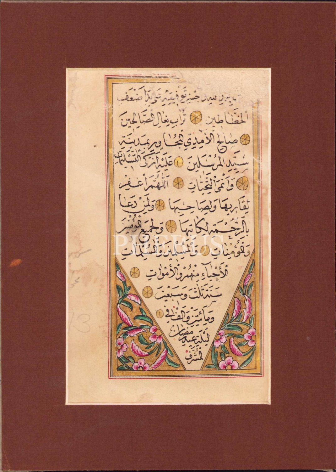 Osmanlı dönemi nesih yazı ve tezhipli, ketebe Salih [Medine-i Münevvere'de oturan] 1273, 21x15 cm