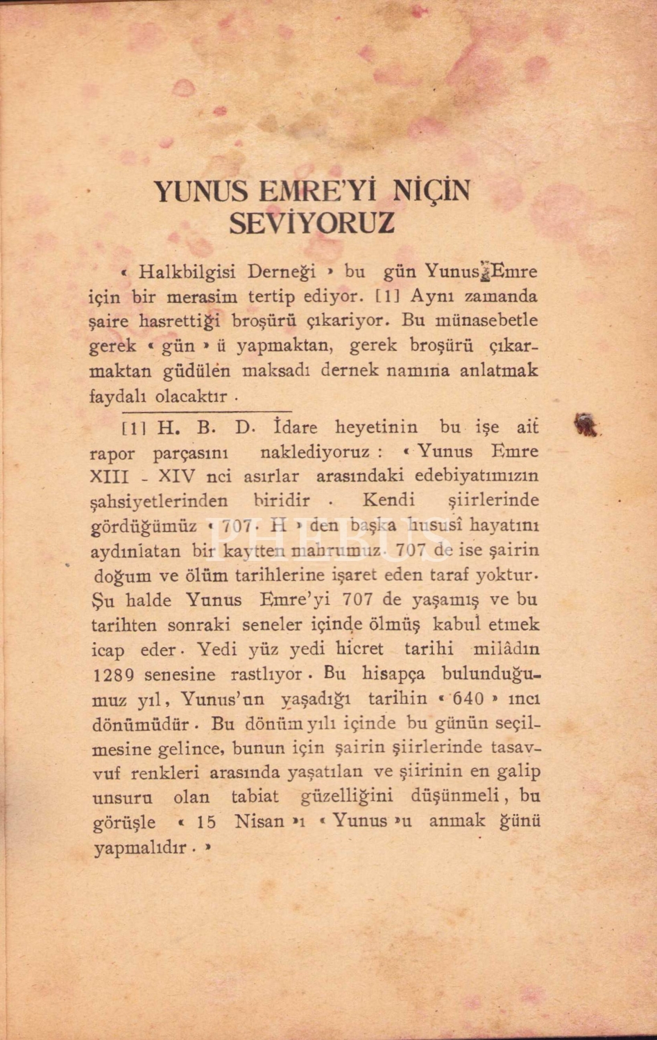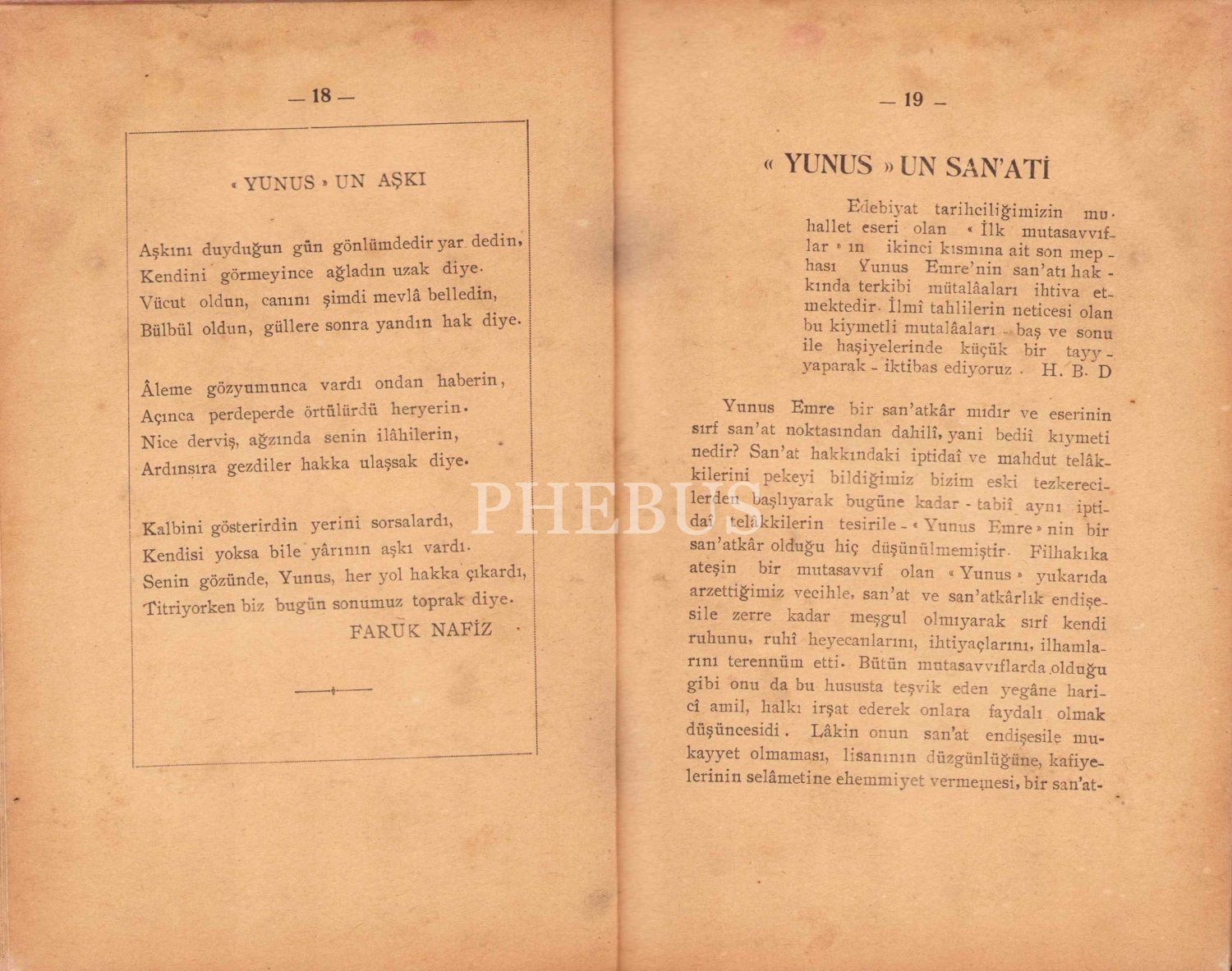 Yunus Emre, Türk Halkbilgisi Derneği Neşriyatı, Sayı: 6, İktisat Matbaası 1929, 48+8 sayfa, 22x15 cm
