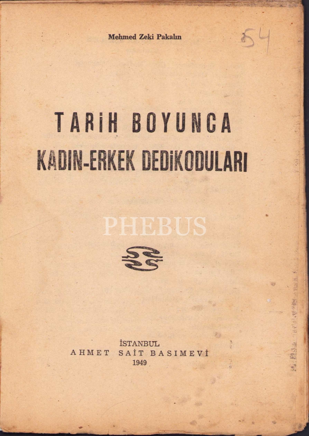 Tarih Boyunca Kadın-Erkek Dedikoduları, Mehmet Zeki Pakalın, Ahmet Sait Basımevi, İstanbul 1948, 48 sayfa, 21x15 cm, haliyle