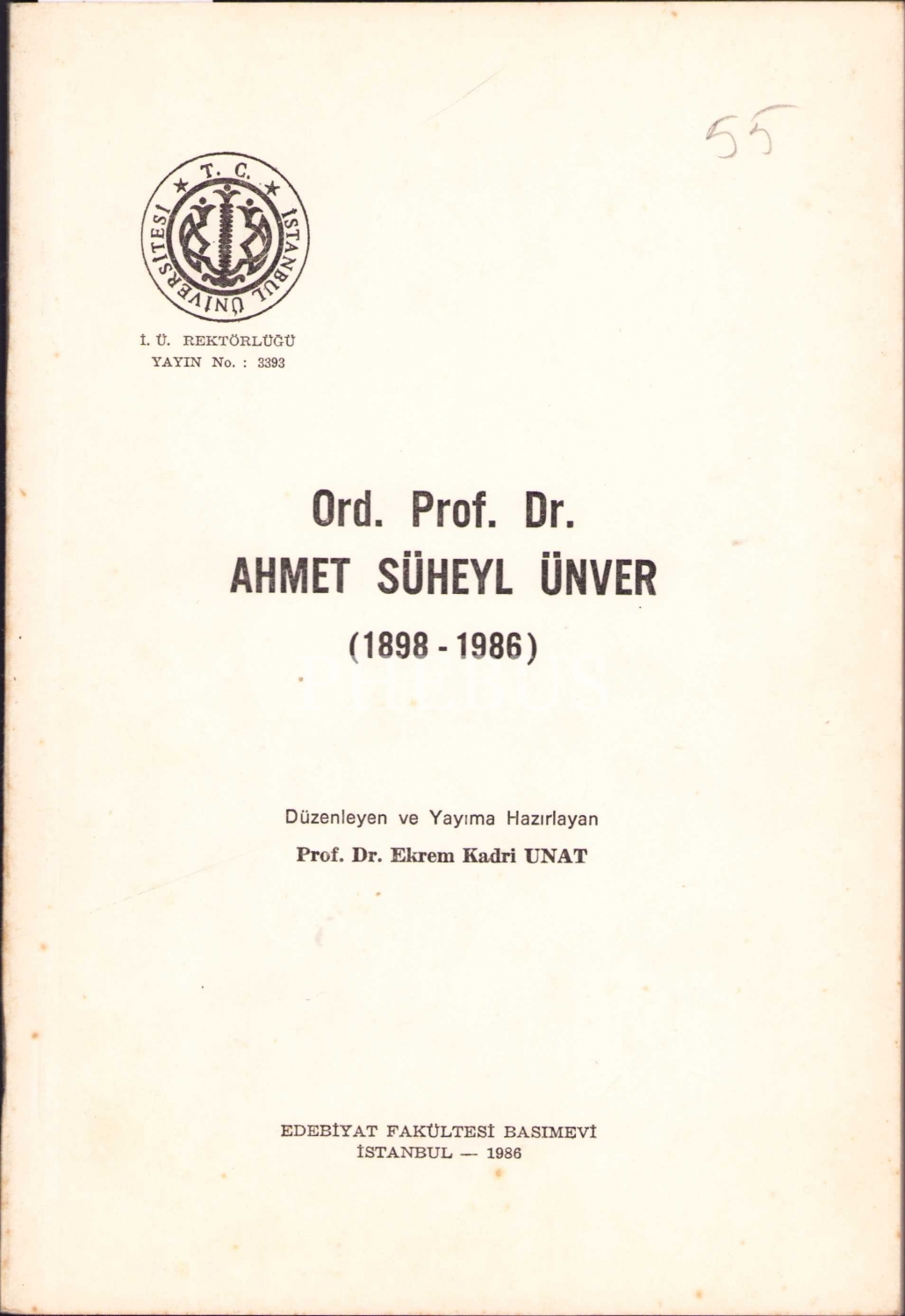 Ord. Prof. Dr. Ahmet Süheyl Ünver (1898-1986), Derleyen ve Yayına Hazırlayan: Prof. Dr. Ekrem Kadri Unat, Edebiyat Fakültesi Basımevi, İstanbul 1986, İstanbul Üniversitesi Yayın No: 3393, 23x16 cm