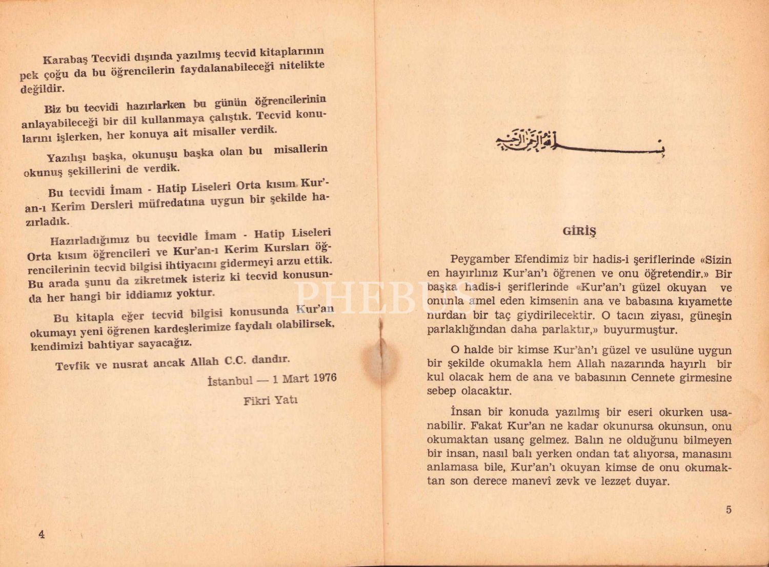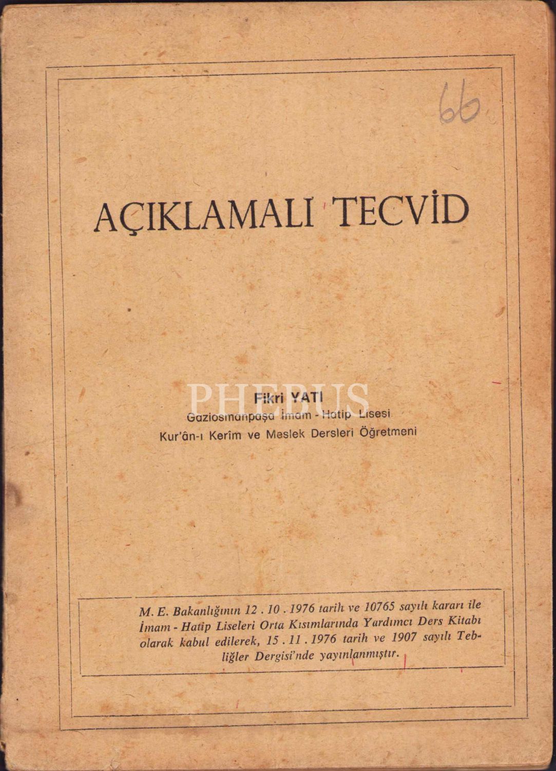 Açıklamalı Tecvid, Fikri Yatı (Gaziosmanpaşa İmam Hatip Lisesi Kur'an-ı Kerim ve Meslek Dersleri Öğretmeni), 1976, 50 sayfa, 19x14 cm