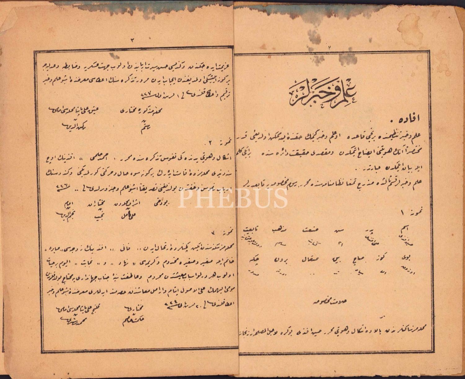 Tertibi Cedid - Güldeste-i Berayi, Mektebi Mülkiye-i Şahane İdadisi Kitabeti Resmiye Muallimi Ali Sırrı, Tab ve Naşiri: Mehmet Rıza, Rıza Efendi Matbaası, İstanbul 1327, 96 sayfa, 22x15 cm