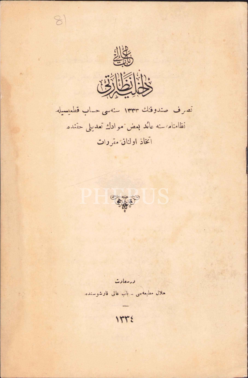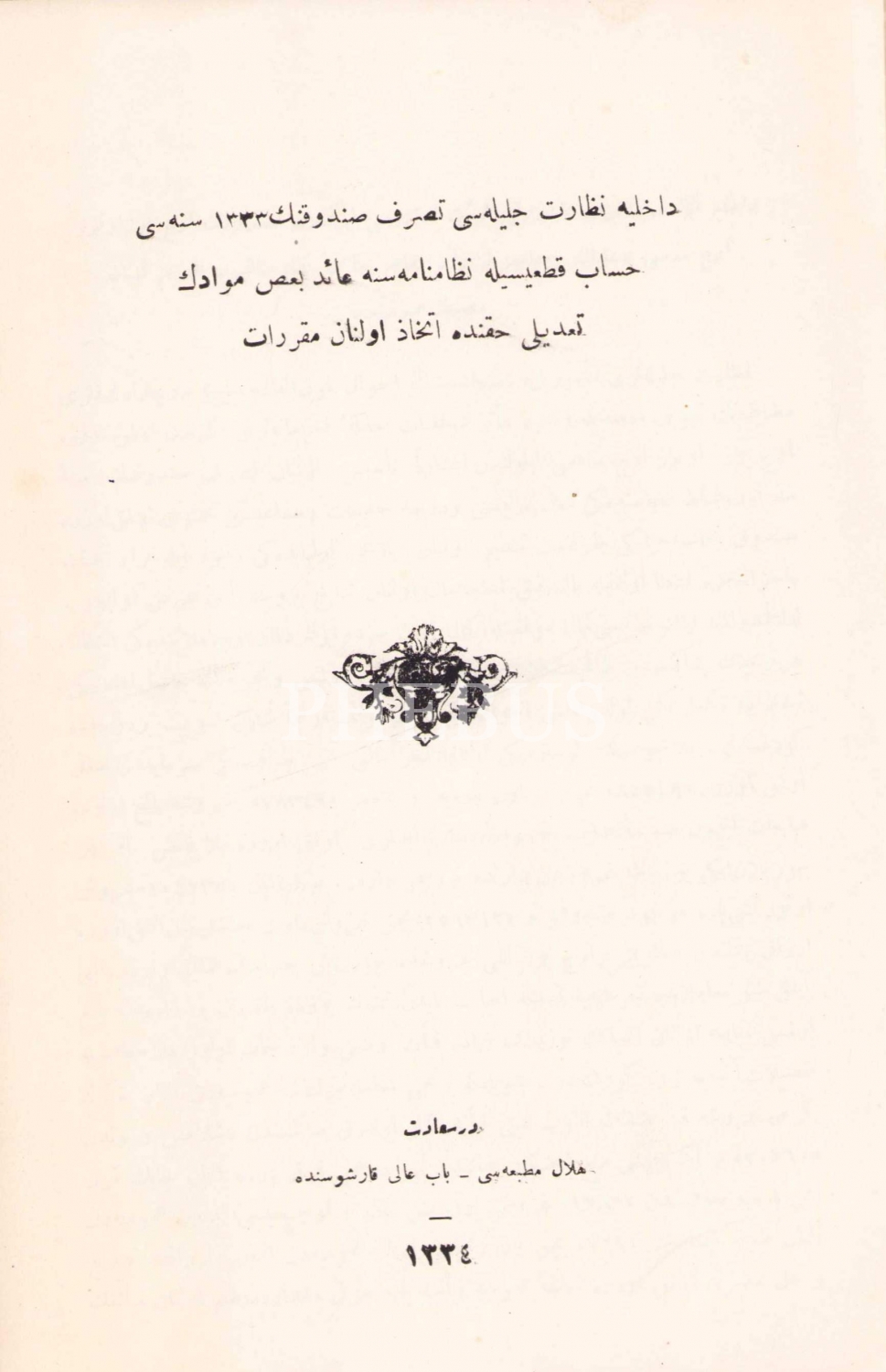 Osmanlıca Bab-ı Ali Dahiliye Nezareti, Dersaadet, Hilal Matbaası 1334, 14 sayfa, 23x15 cm