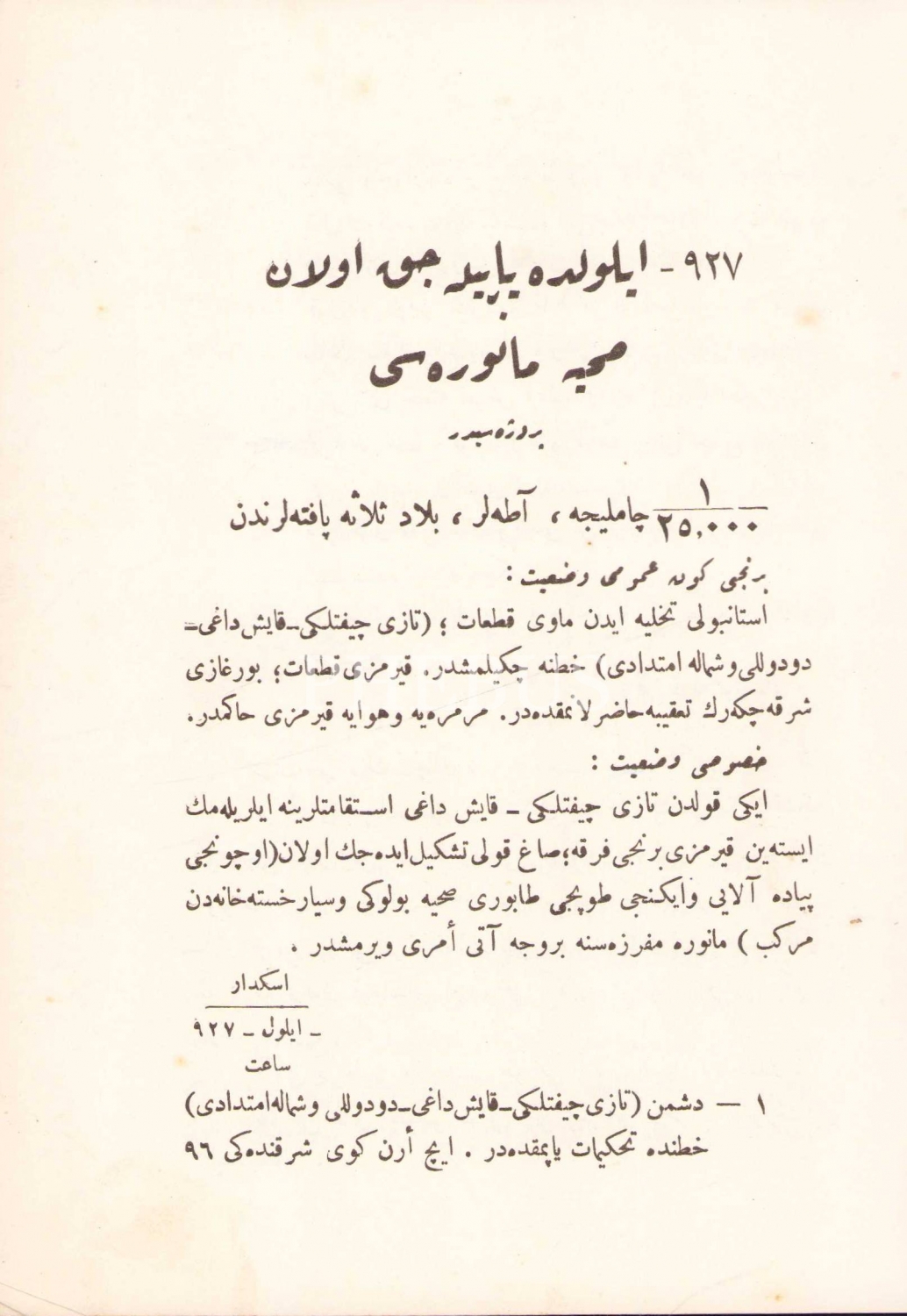 1927 Senesi Eylül'de Yapılacak Olan Sıhhiye Manevrası Pervüjesidir. İstanbul 1927, 15 sayfa, 14x19 cm