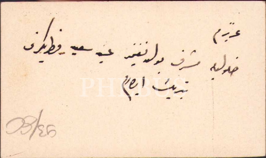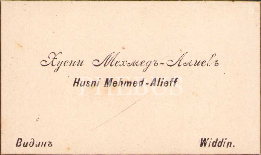 Hüsni Mehmed Alieff, kartvizit, arkası Osmanlıca bayram tebrikli, 7x5 cm